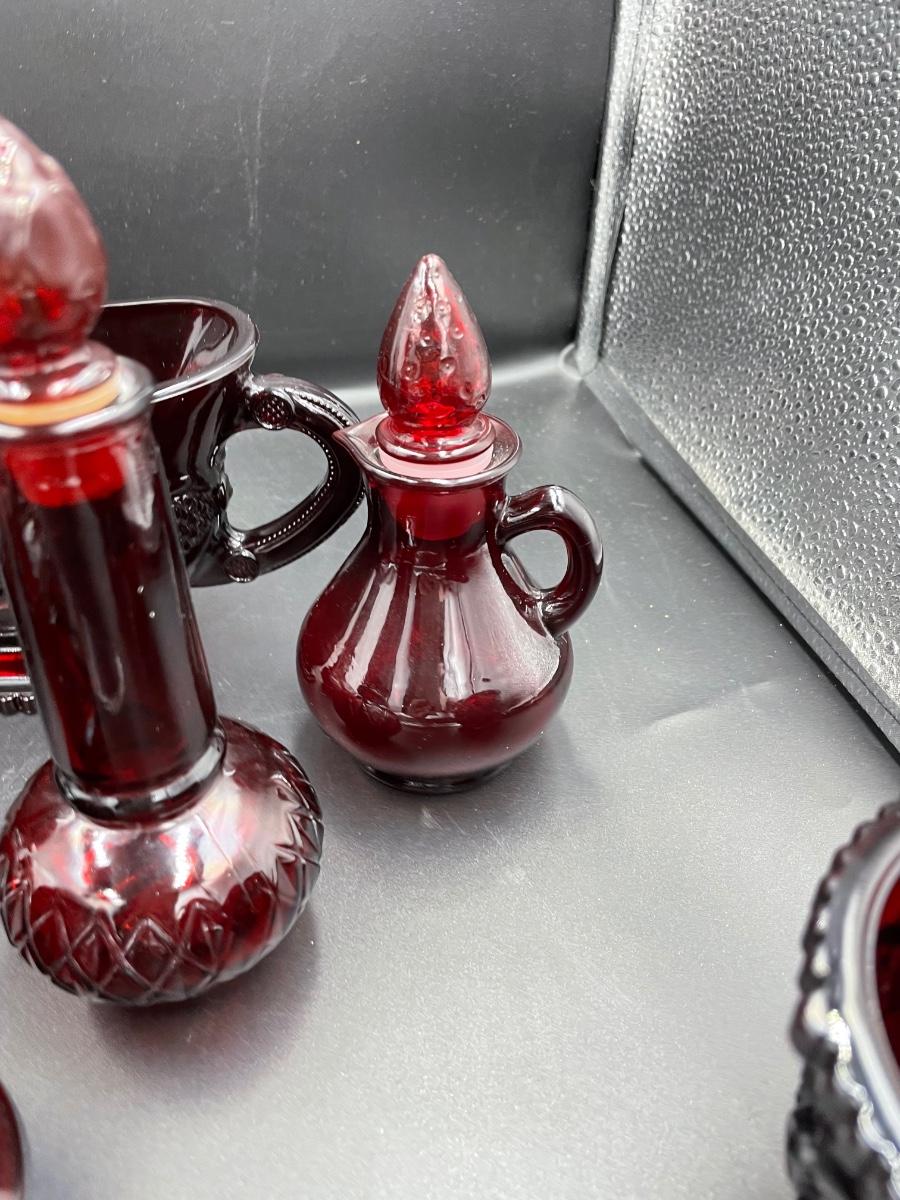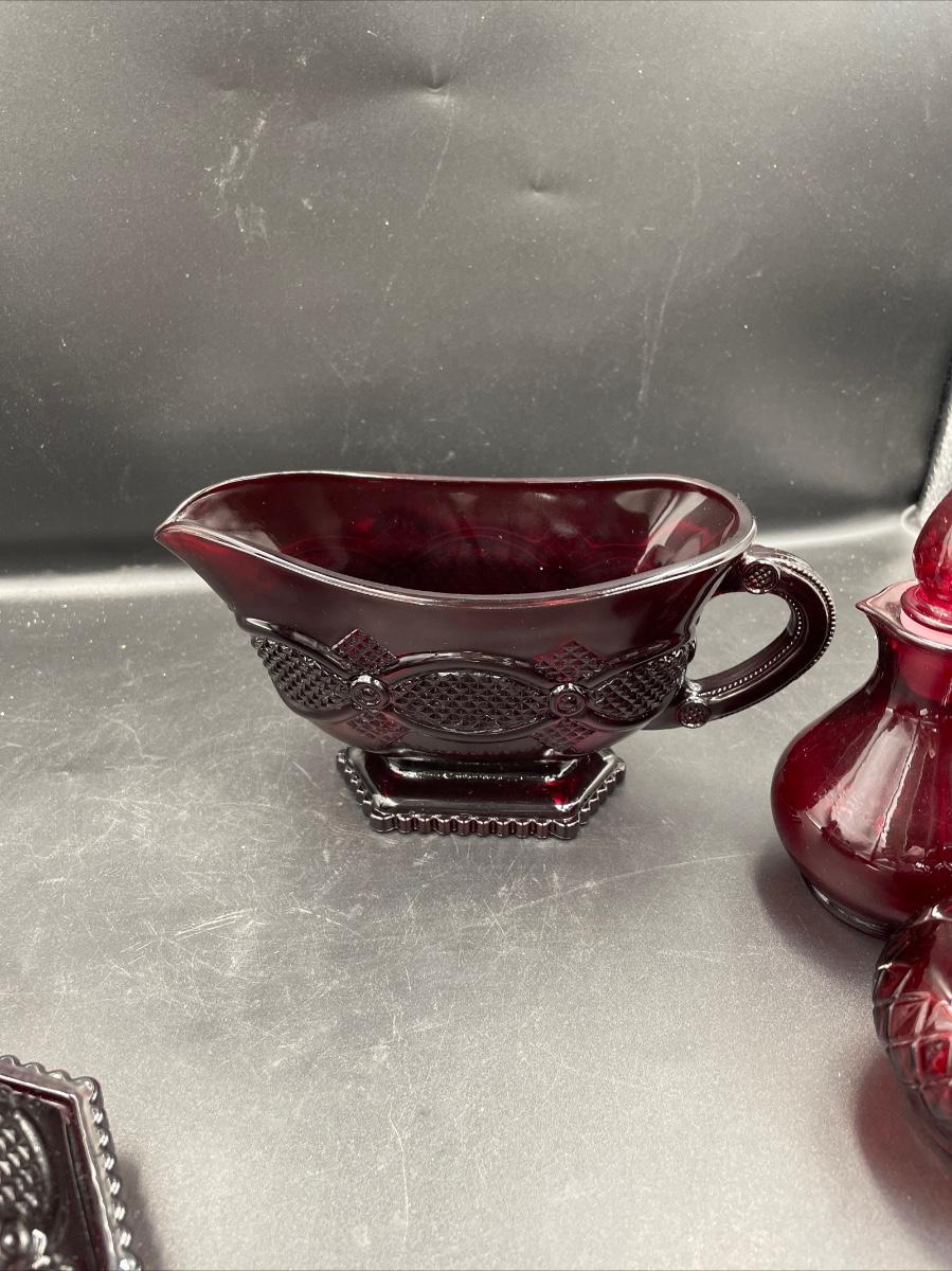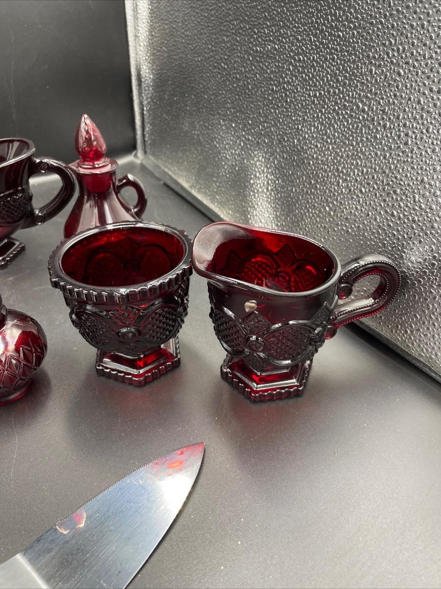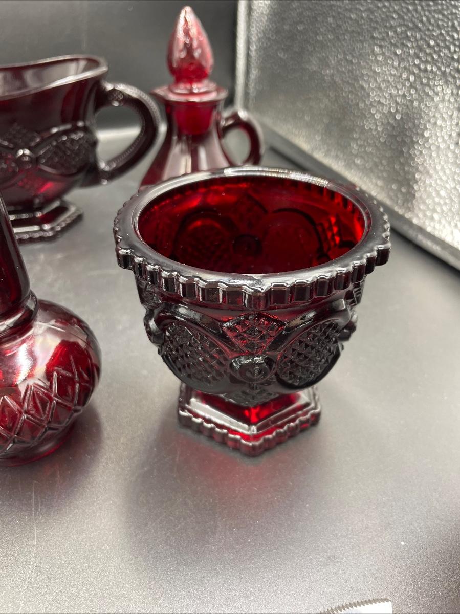 1 bell. 1vinegar cruet 1 creamer 1 sugar 1 Topaz cologne bottle
