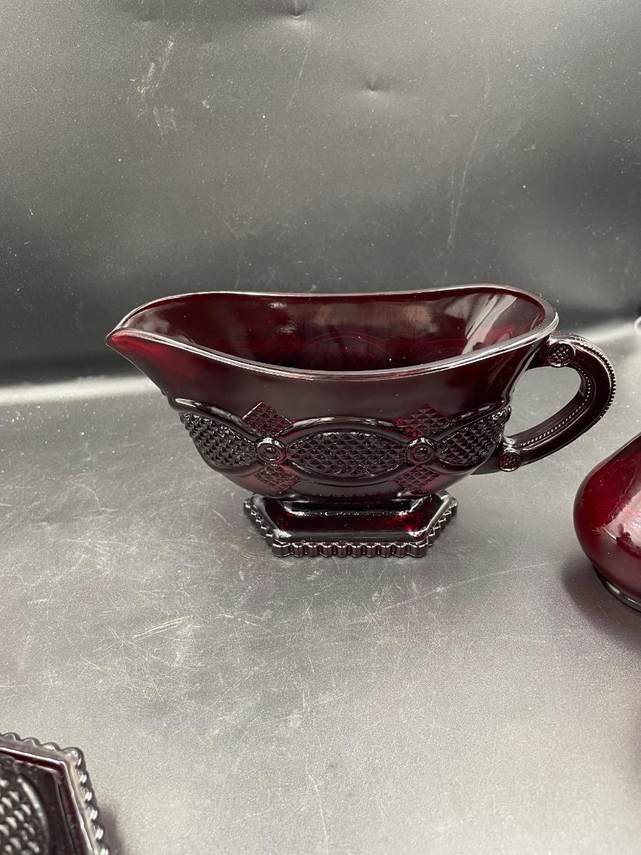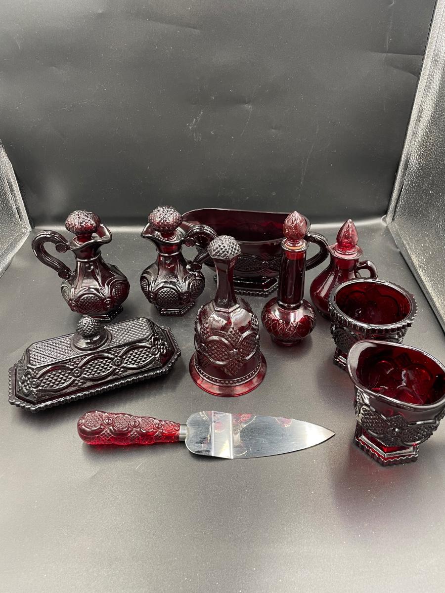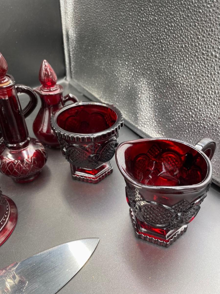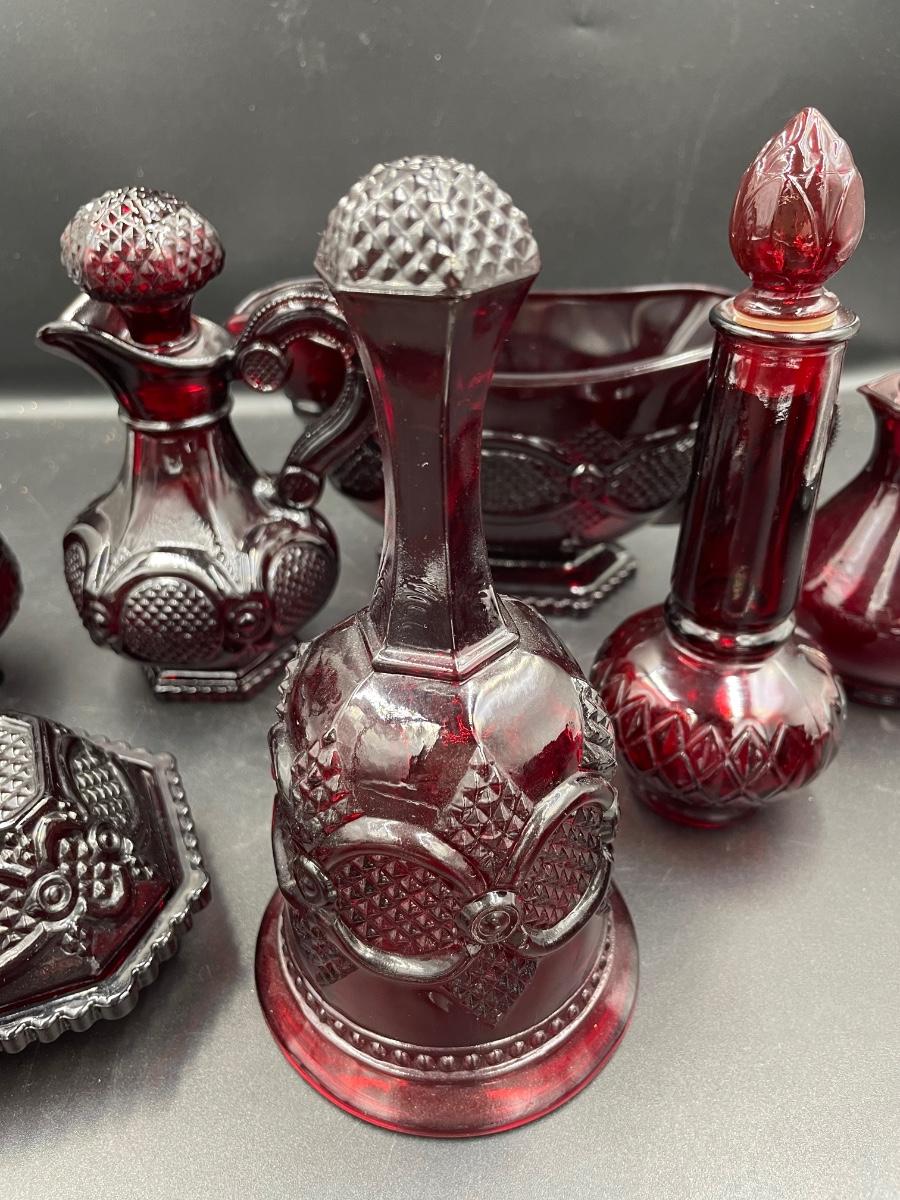 1 bell. 1vinegar cruet 1 creamer 1 sugar 1 Topaz cologne bottle