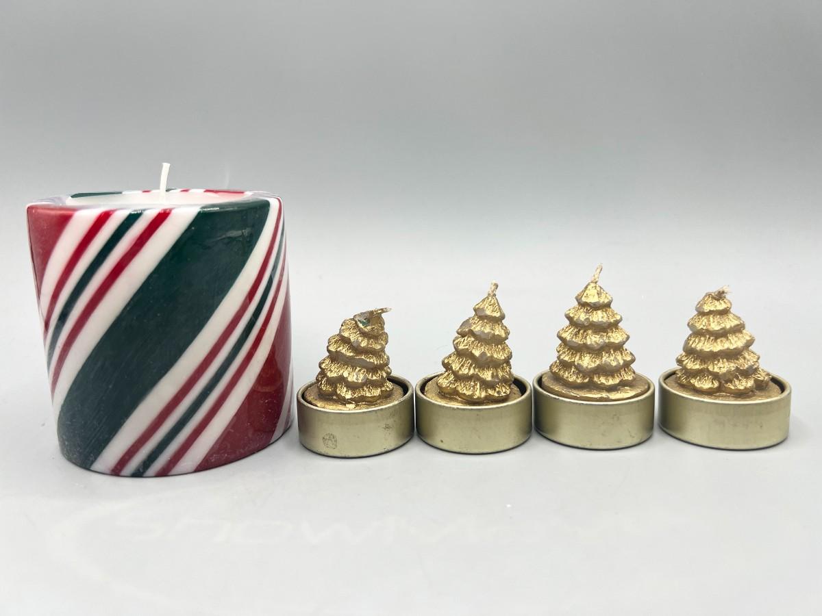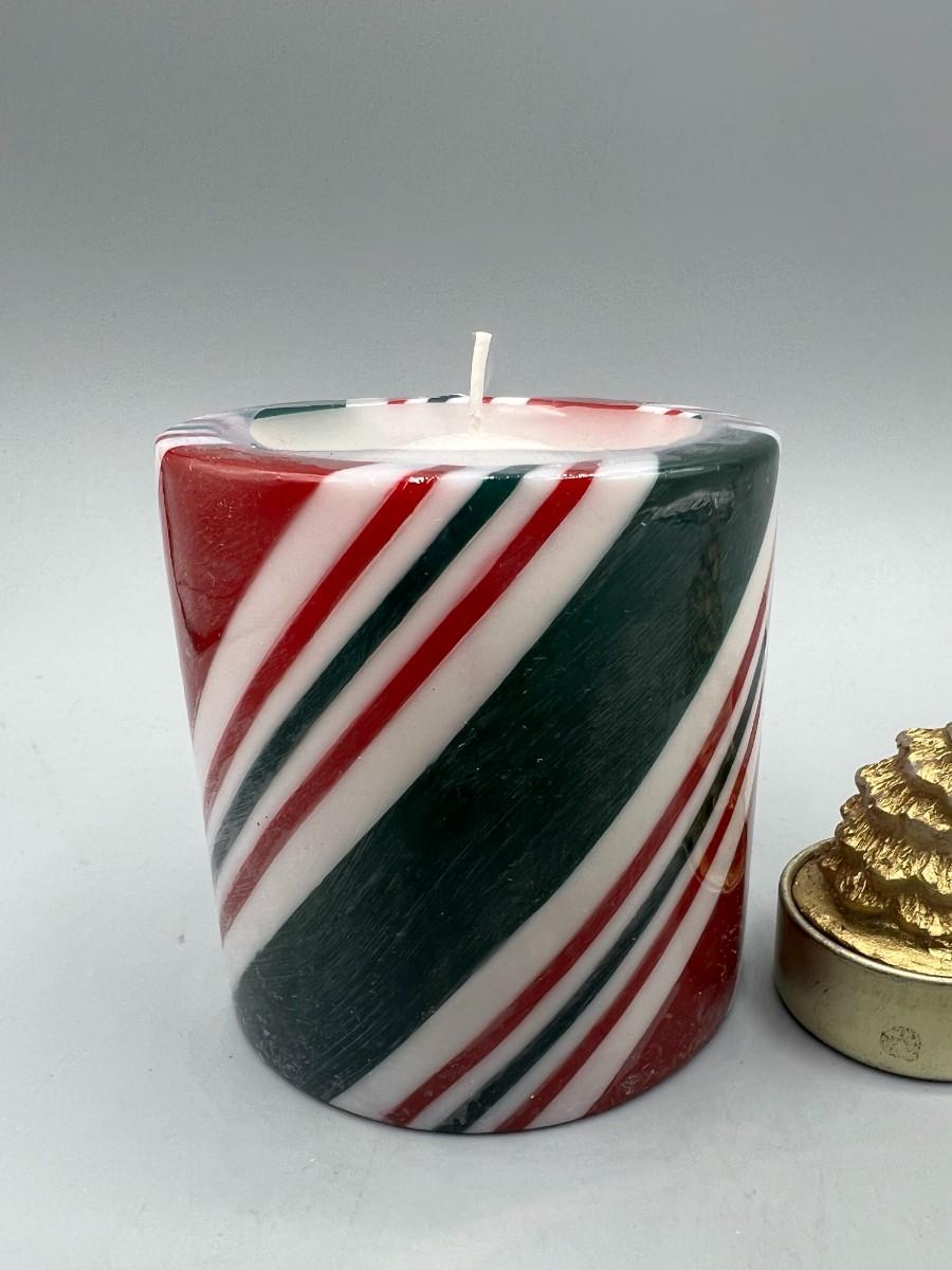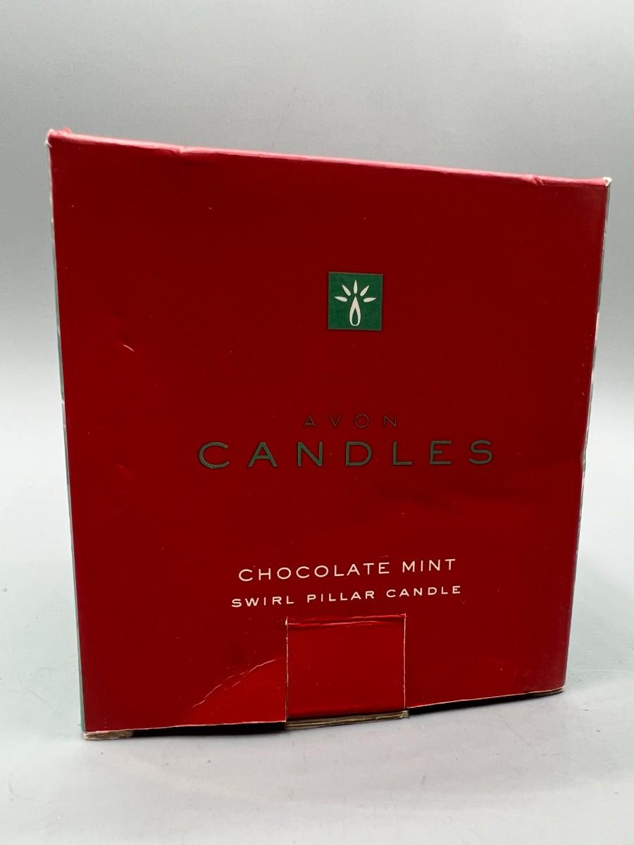 Avon Chocolate Mint Swirl Pillar Candle & Gold Tealight Christmas Decor Candles