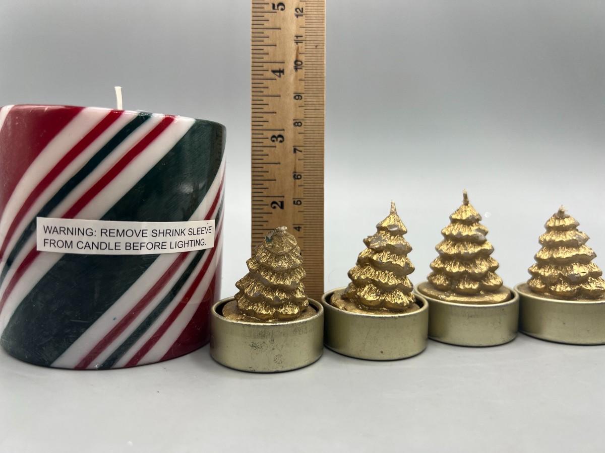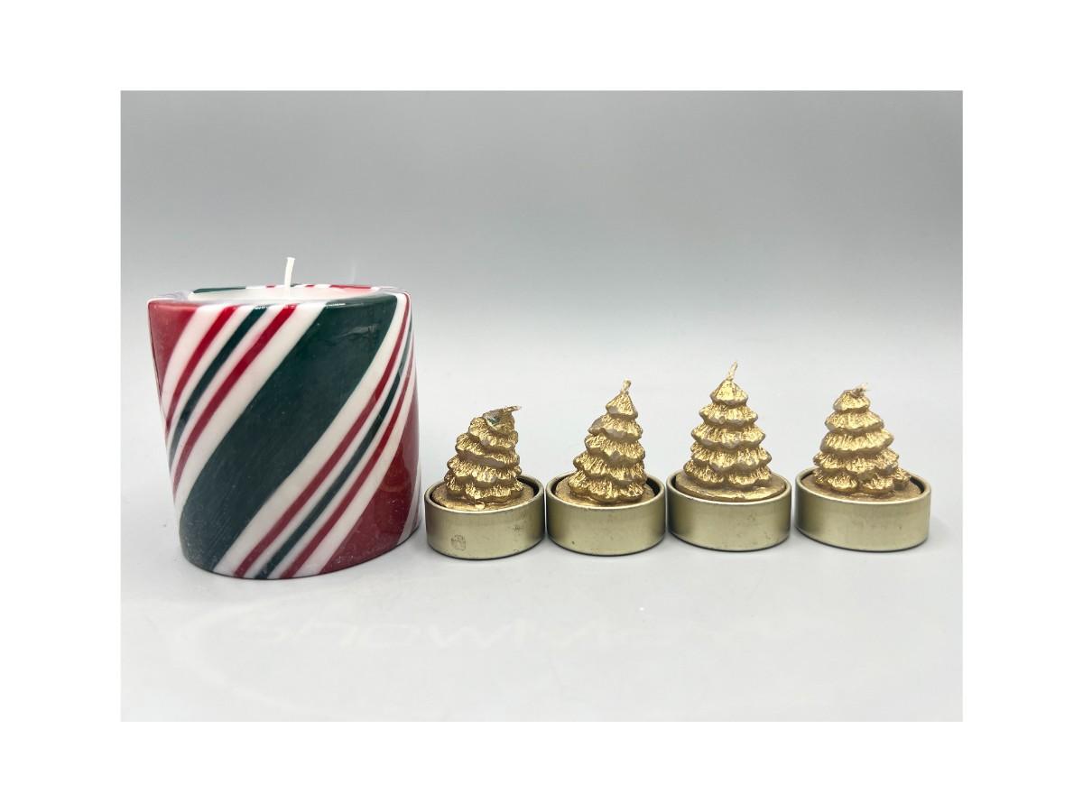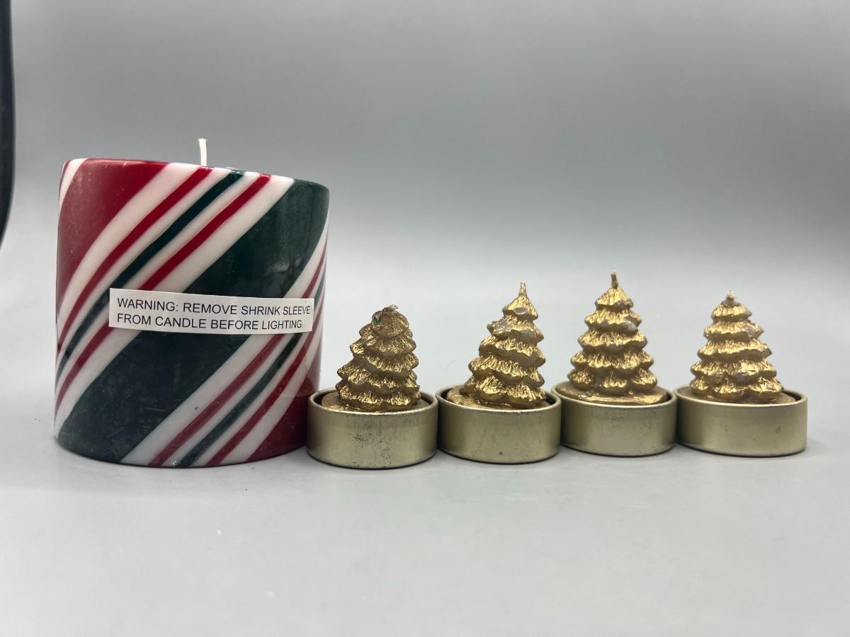 Avon Chocolate Mint Swirl Pillar Candle & Gold Tealight Christmas Decor Candles