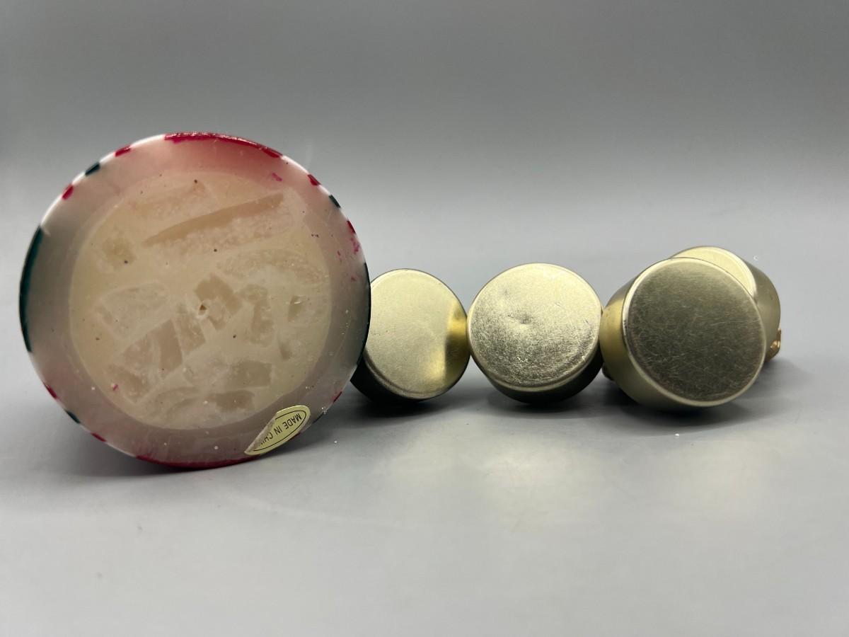 There is no significant damage to any of the candles in the lot and is in overall good useable or displayable condition. Check pictures for more details and for sizing.