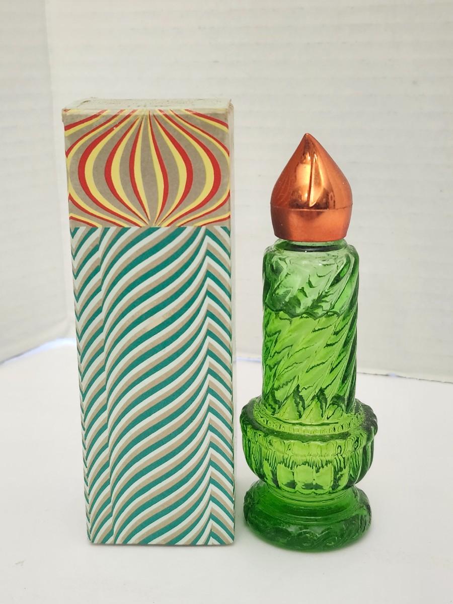 Avon Christmas Candle Moonwind Cologne 1 Fl Oz Vintage Green Glass Bottle With Original Box