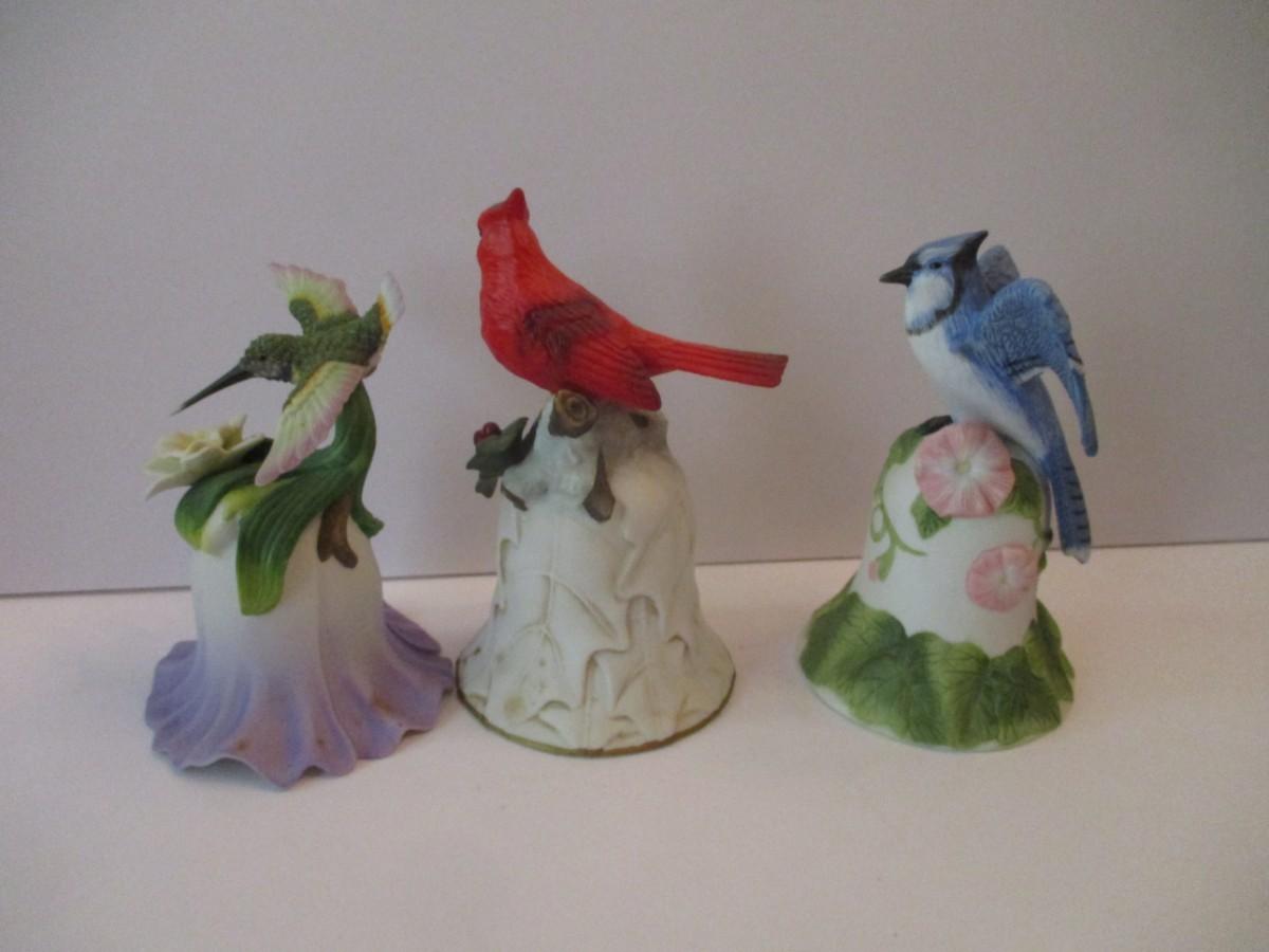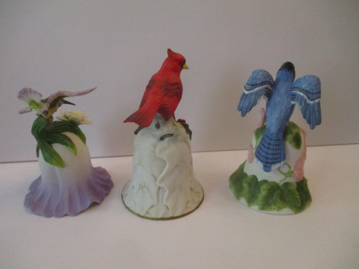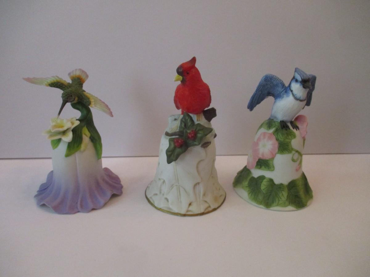 Avon Collectible Bird Bells Blue Jay Cardinal & Hummingbird