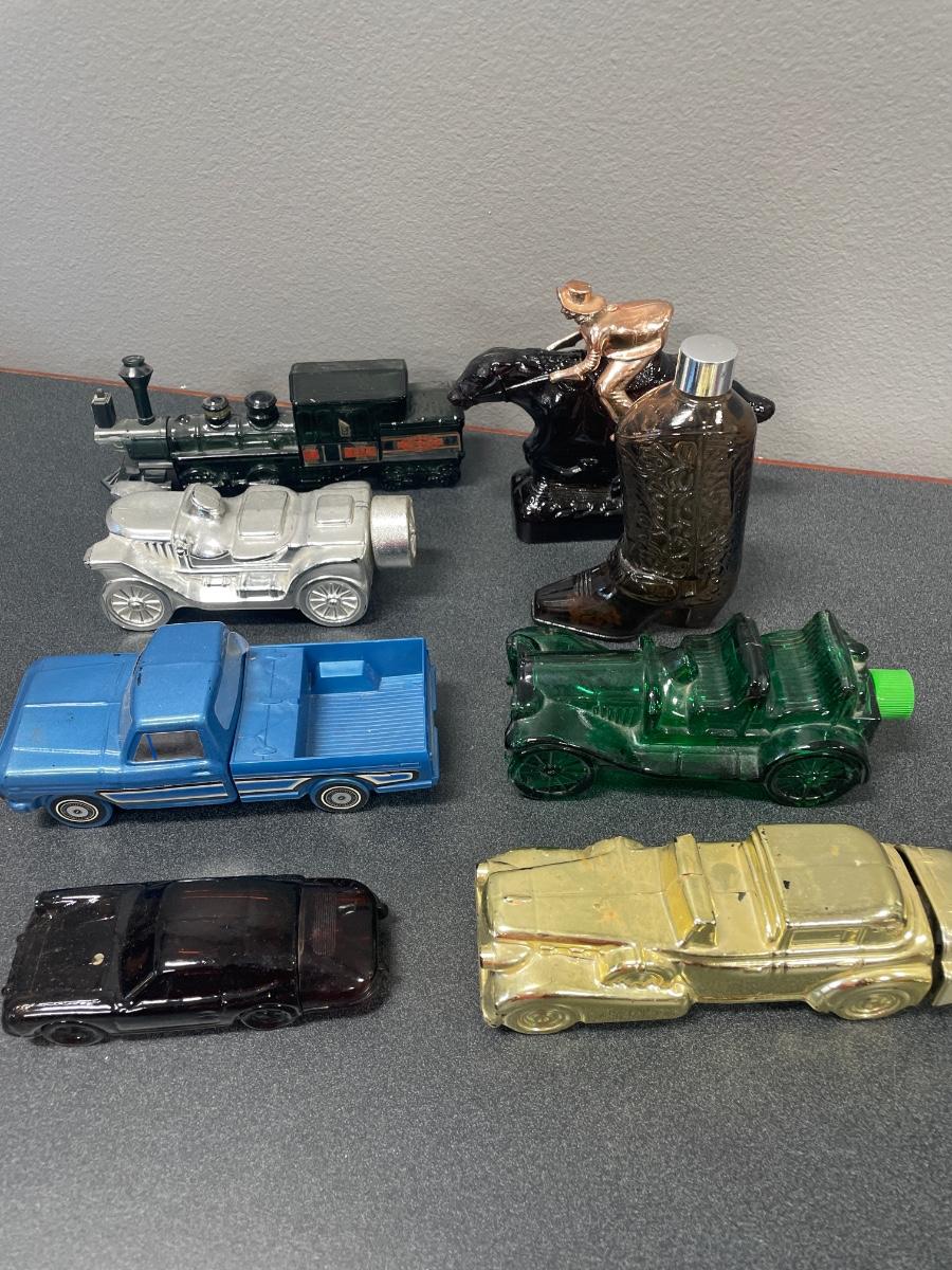 Includes train, cars, pickup truck, horse and boot. Some of them still have cologne in them.