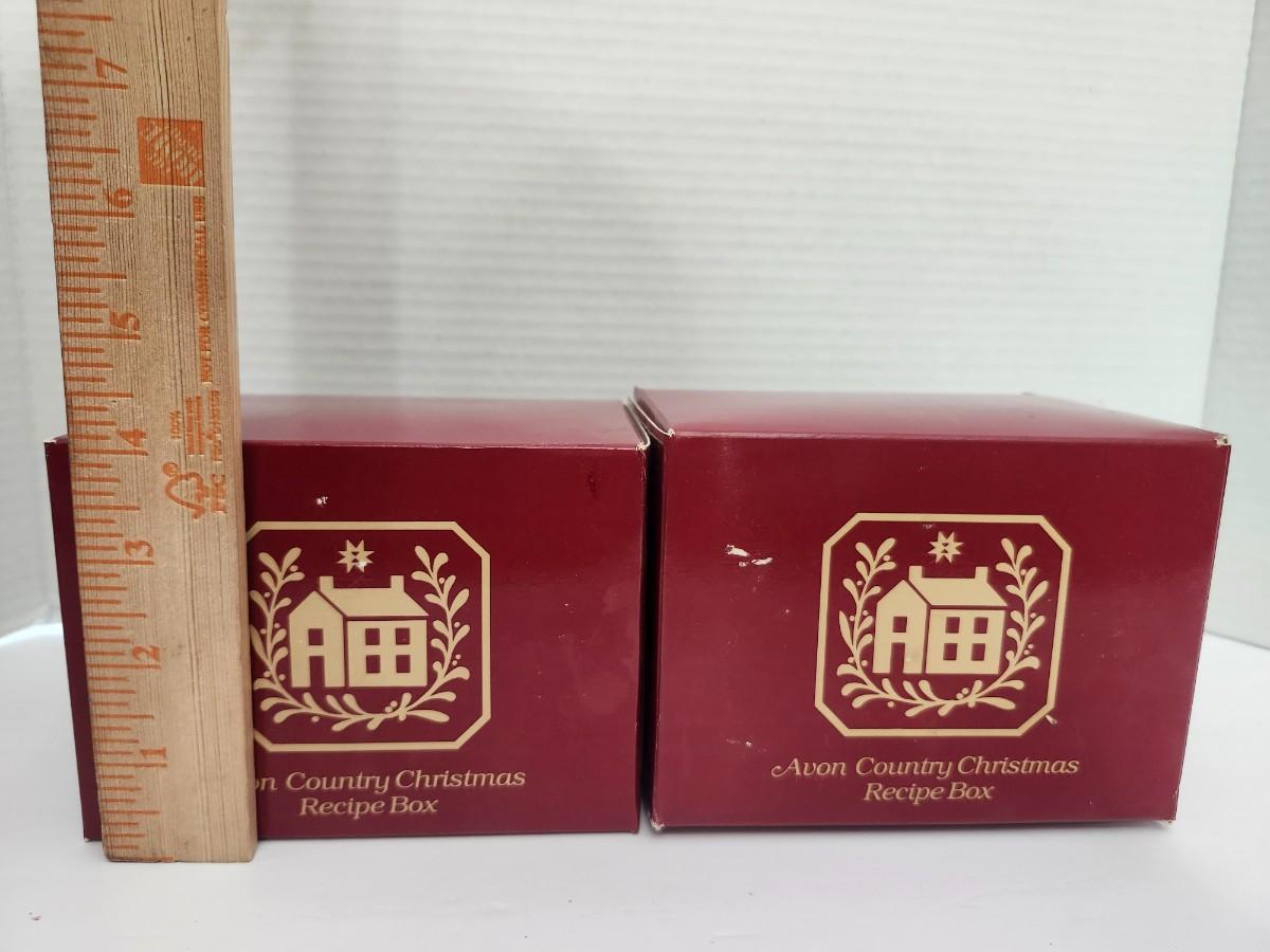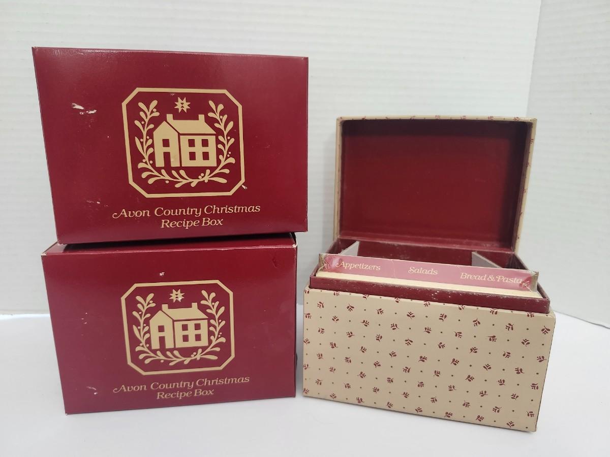 Avon Country Christmas Recipe Box Lot of 2 Vintage Holiday Kitchen Storage with Dividers
