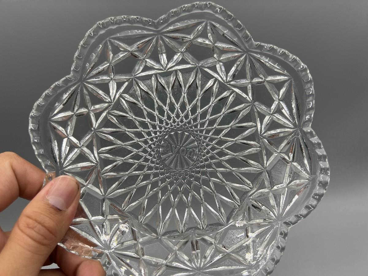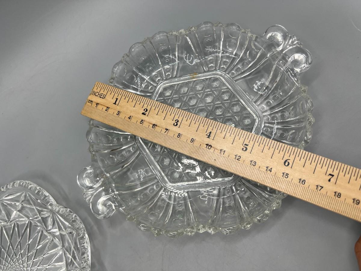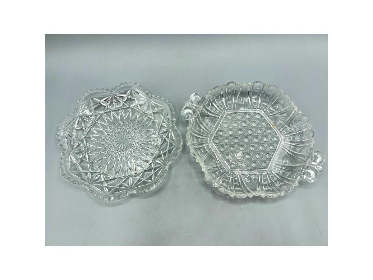 Avon Crystal Glass Geometric Pattern & Crystal Dot Pressed Glass Candy Dishes