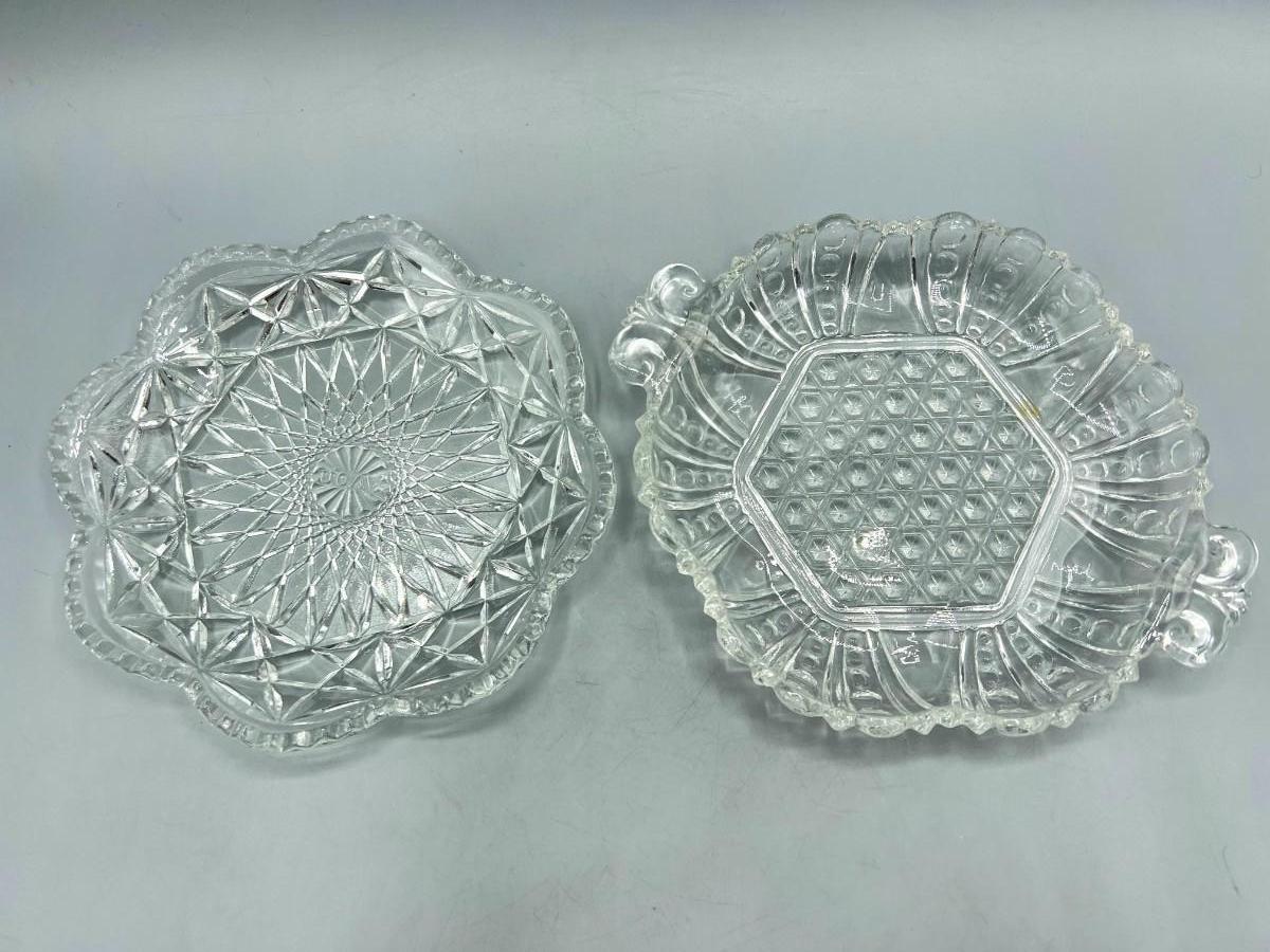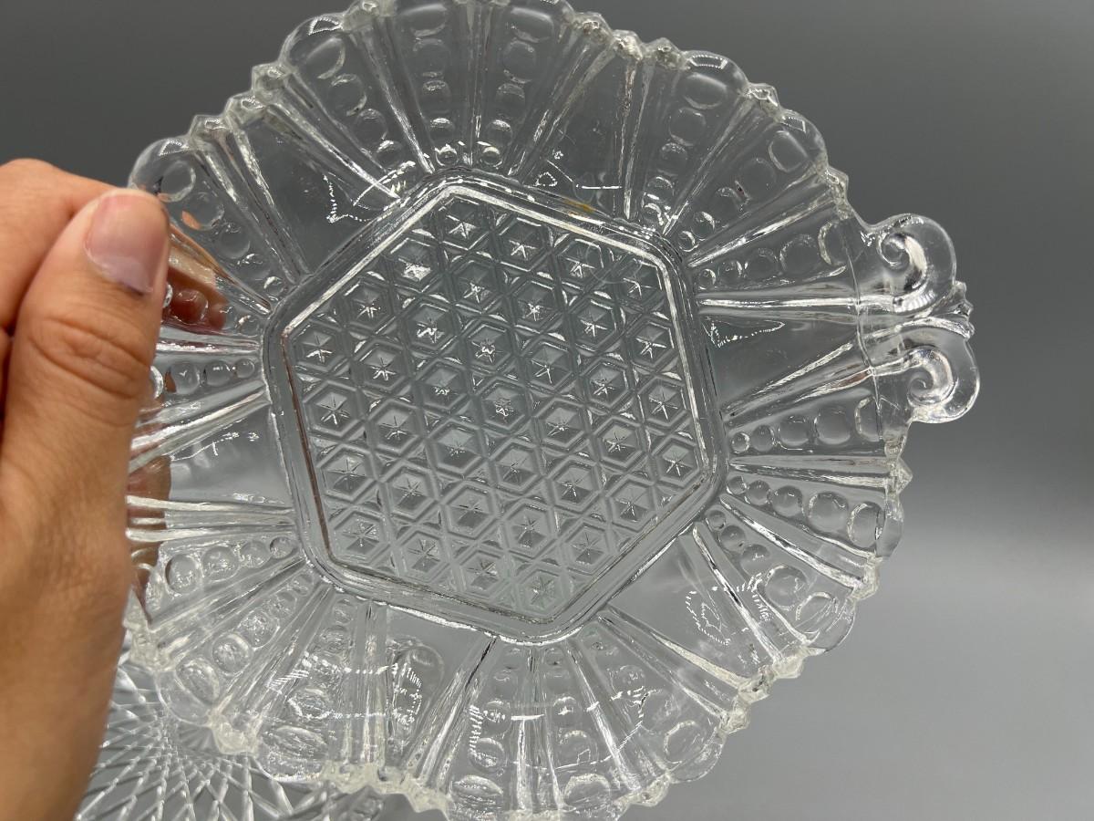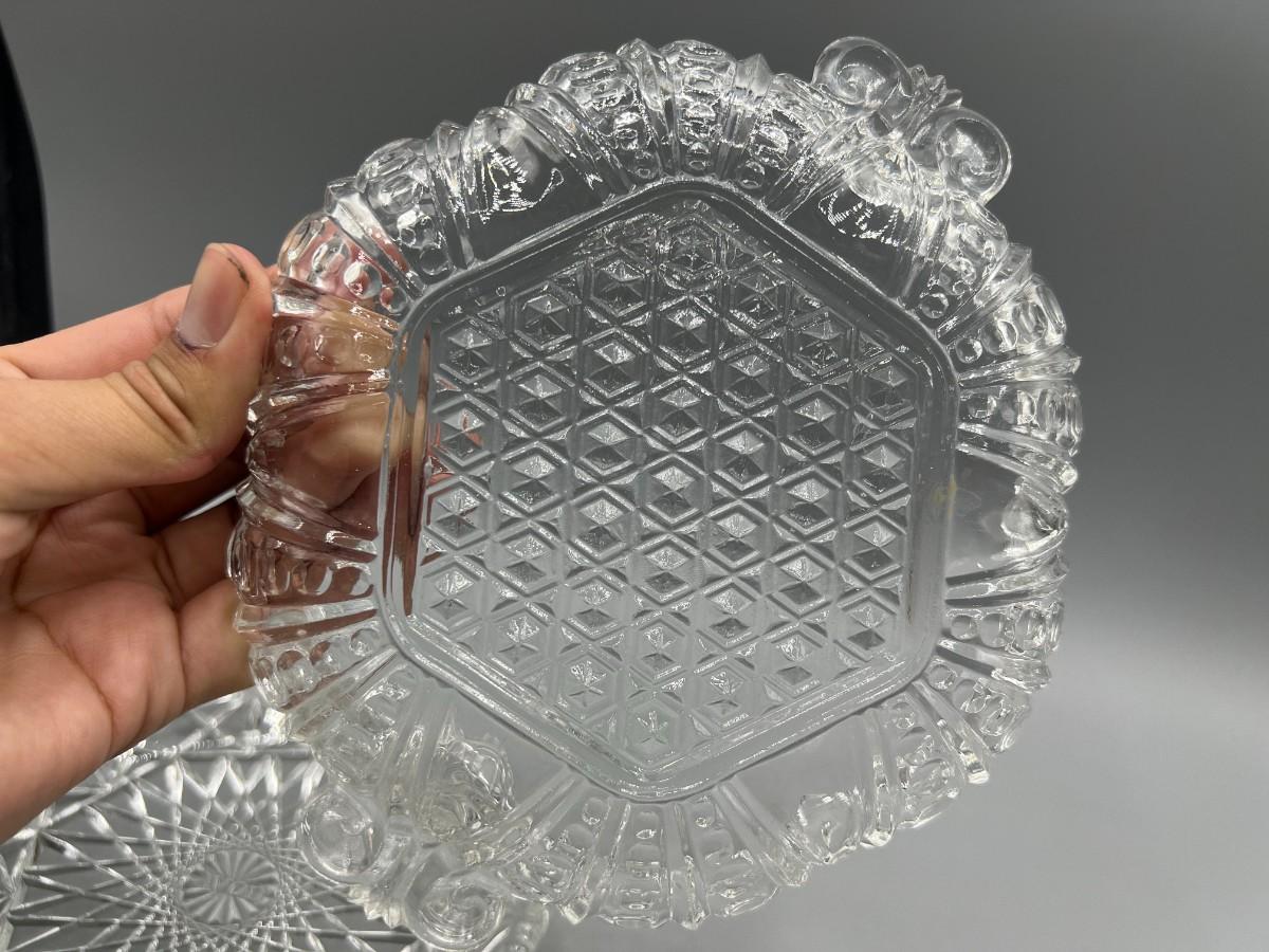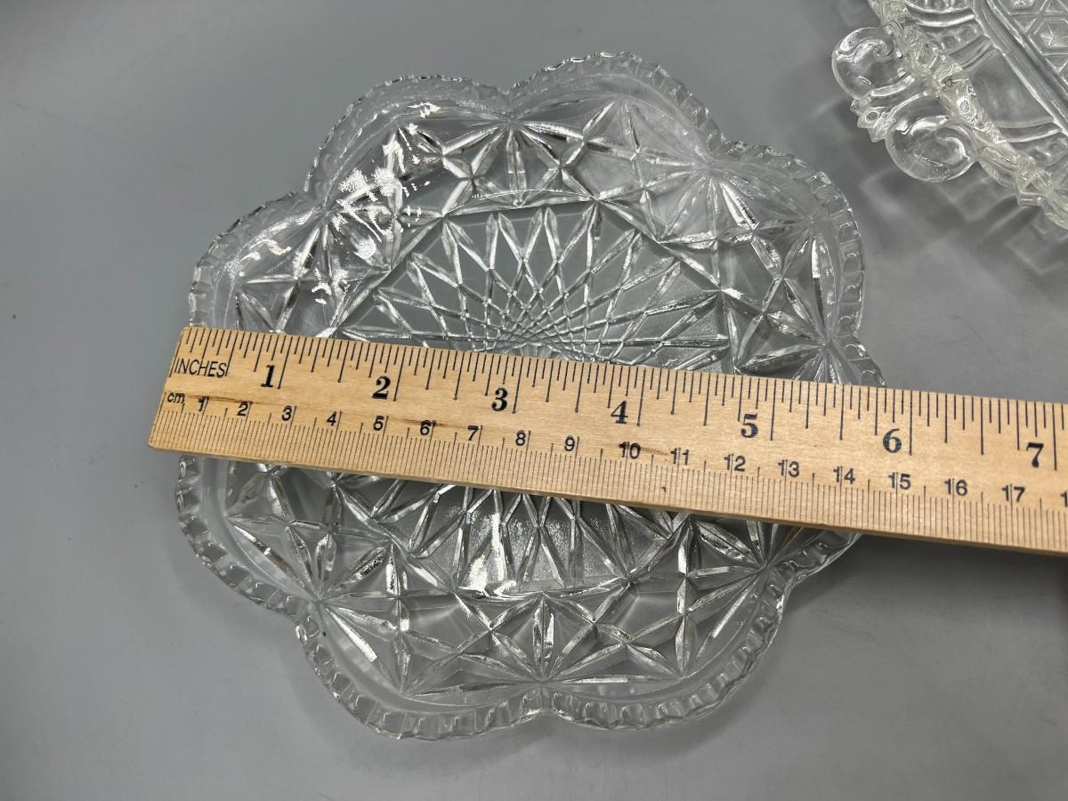 Avon Crystal Glass Geometric Pattern & Crystal Dot Pressed Glass Candy Dishes