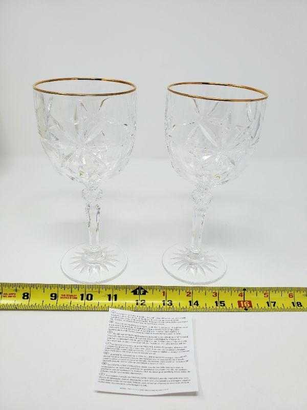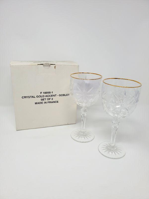 New in box, Avon crystal gold accent goblet set of 2, made in France