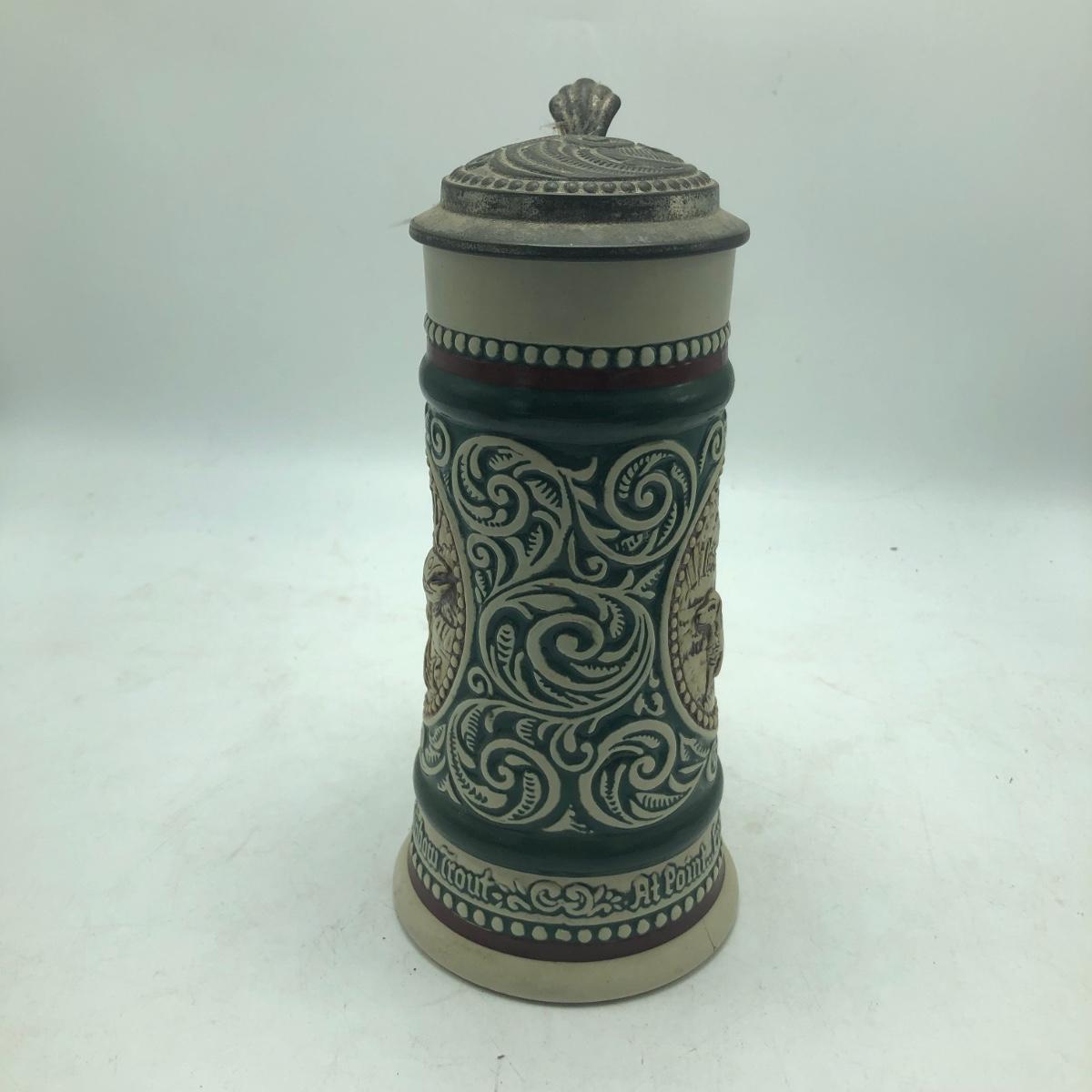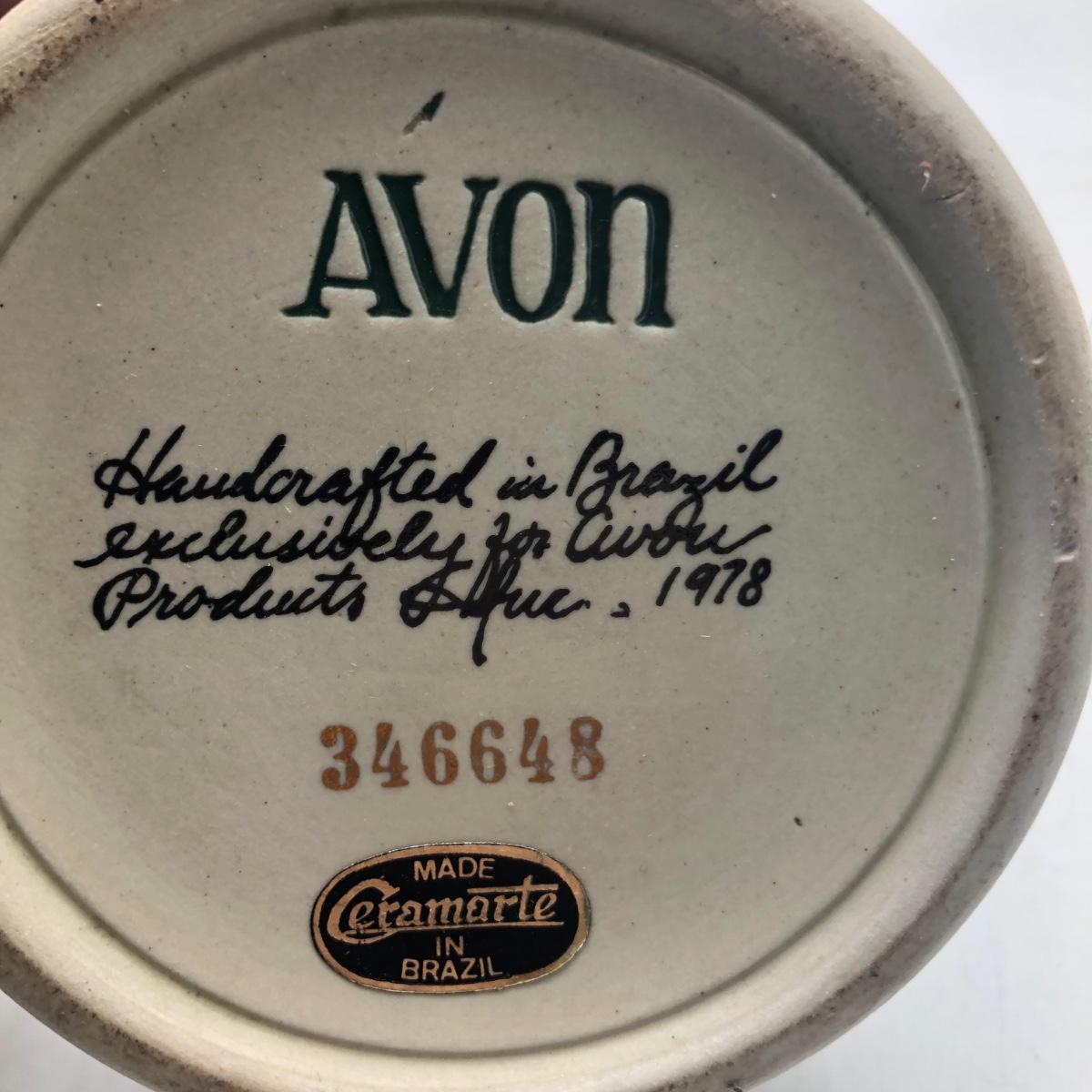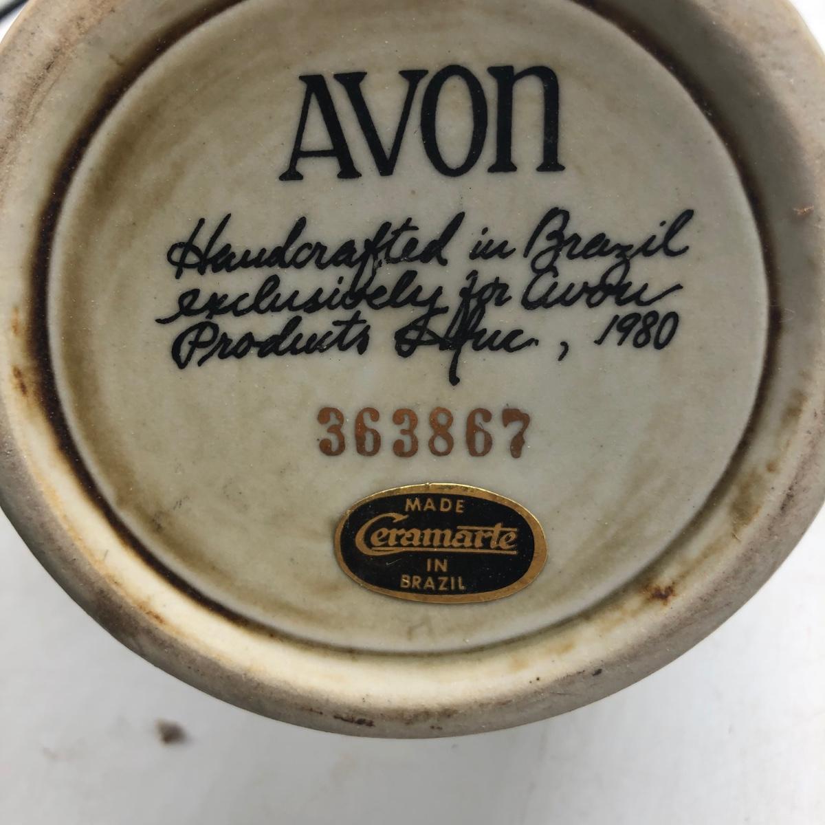 Lot includes Avon English Setter stein with small crack at bottom, Roping and Barkentine steins. Steins are from 1977, 1978 and 1980. Largest stein measures 4” x 5” x 9”.