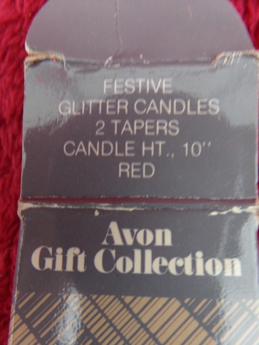Avon Gift Collection - 2 festive glitter candles, 10". NEW IN BOX. UNUSED.