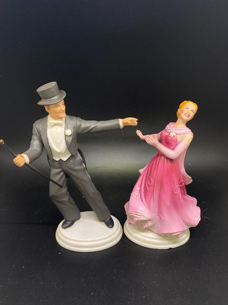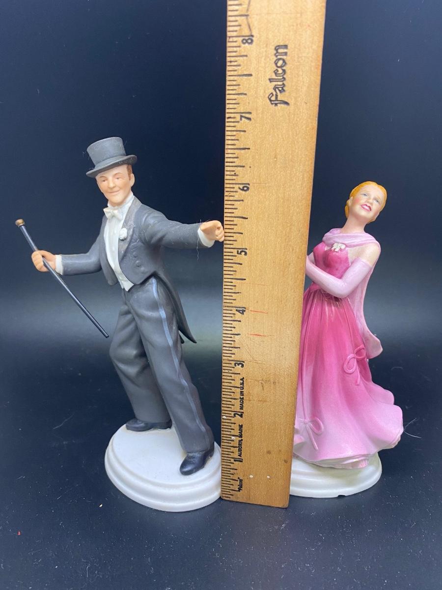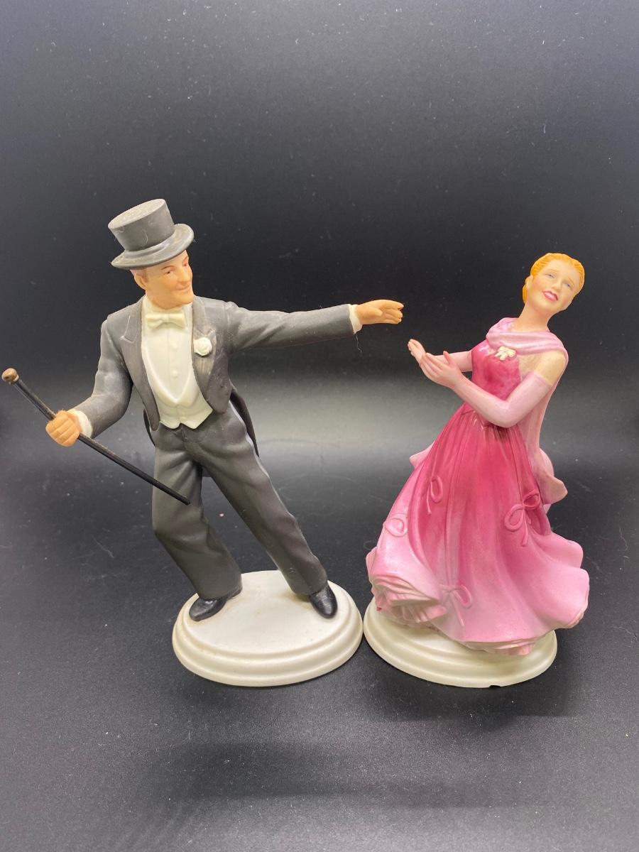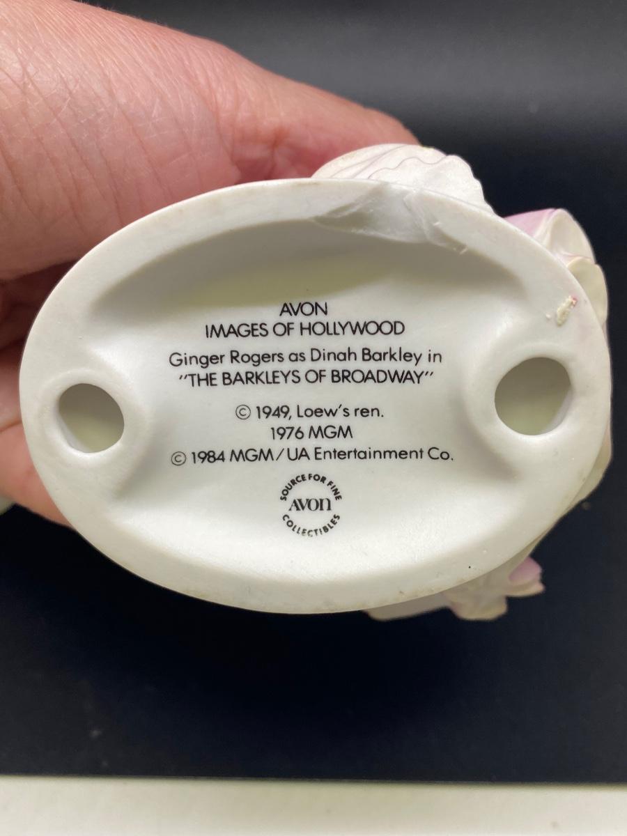 AVON Images of Hollywood Ginger Rogers & Fred Astaire "The Barkleys of Broadway" figurines. In good condition, Ginger does have a small chip in the bottom edge. Marked and dated on the bottom. About 7" tall.