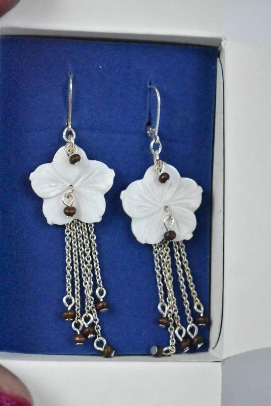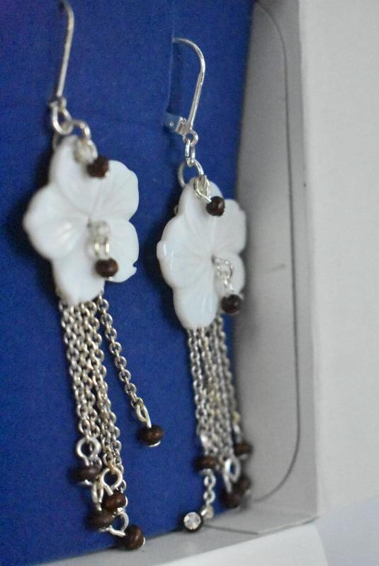 Avon Island Vibe Mother of Pearl Flower Medallion Earrings - New in Box