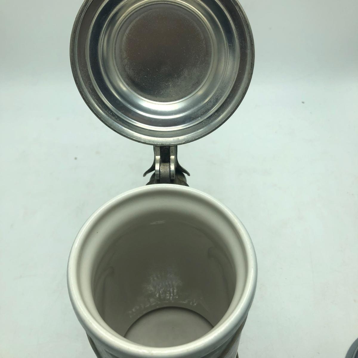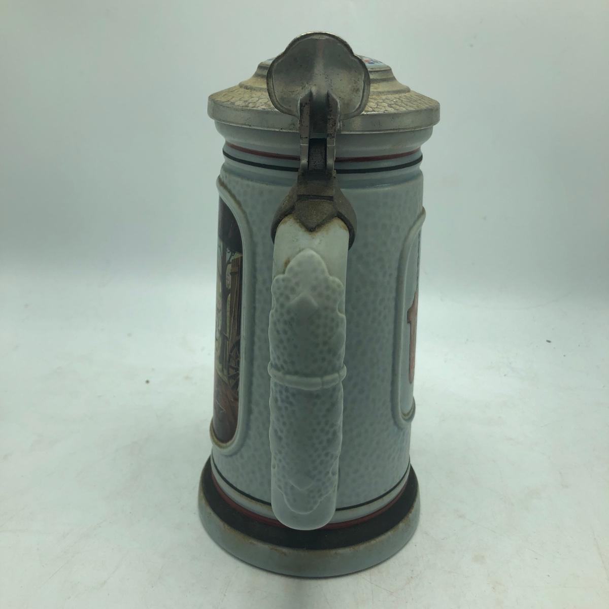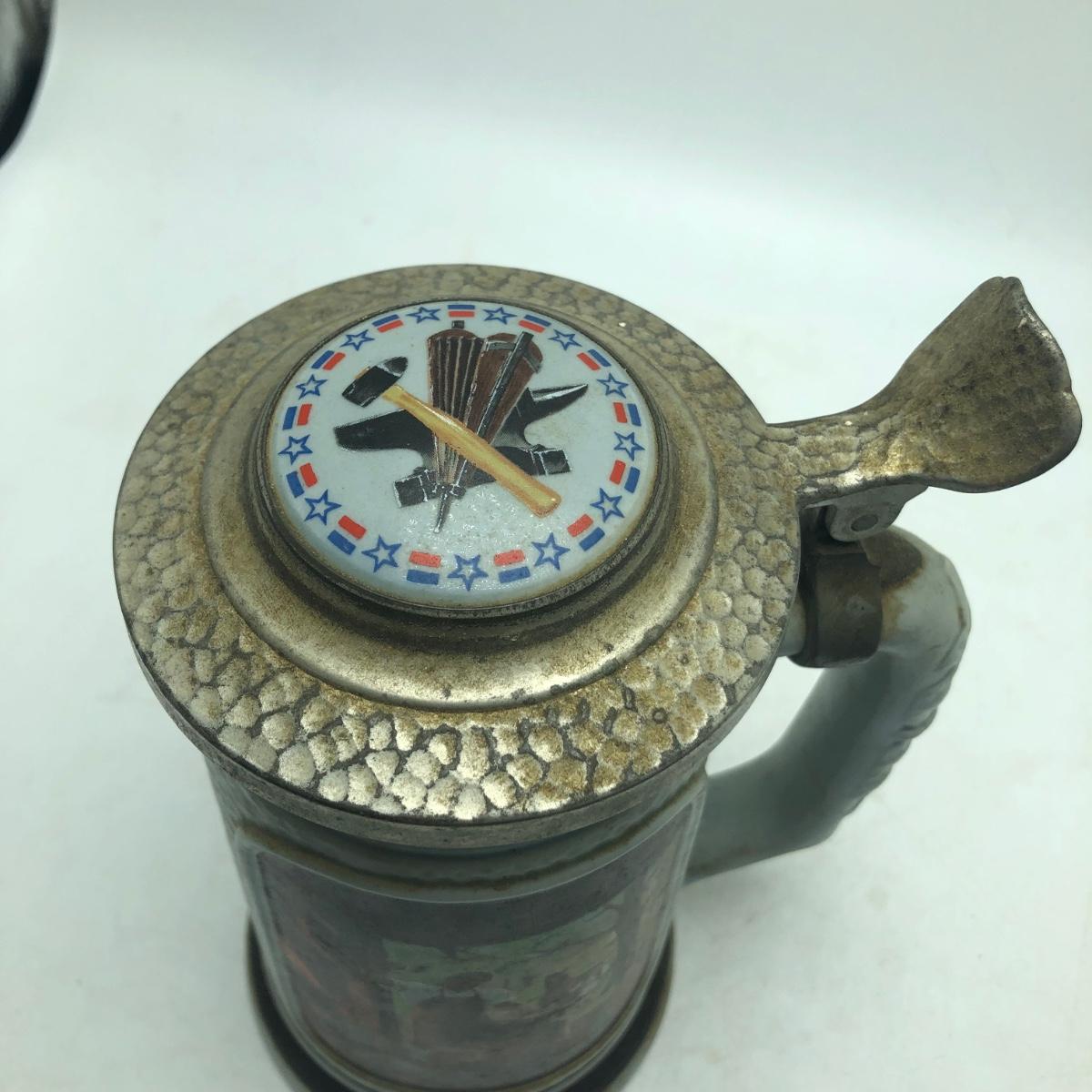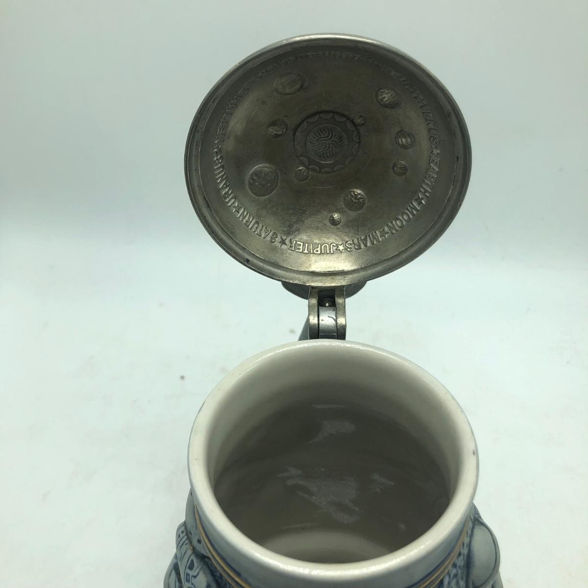 Lot includes two Knights of the Realm steins, Conquest of Space and The Blacksmith steins. Largest stein measures 4.25” x 6” x 9.5”.