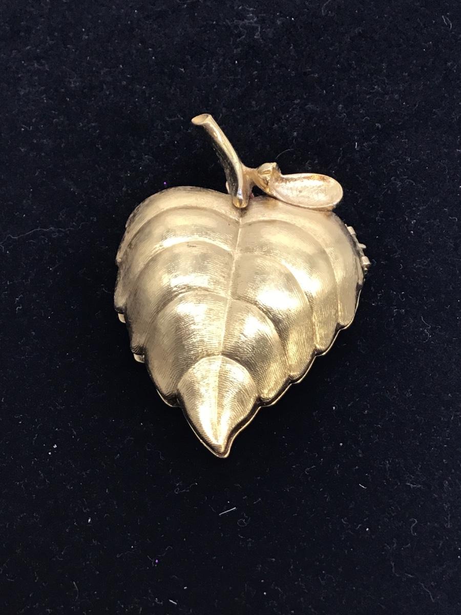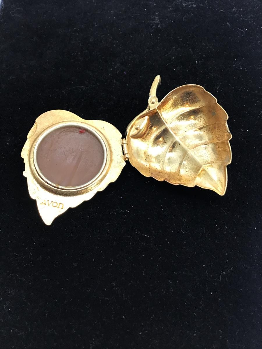 Avon Leaf perfume Brooch gold tone metal Vintage Locket Pin