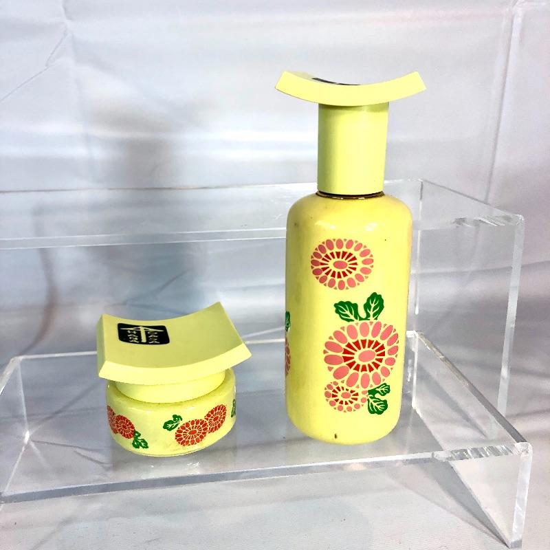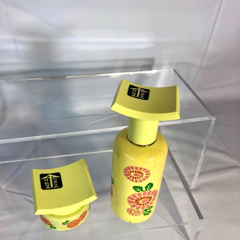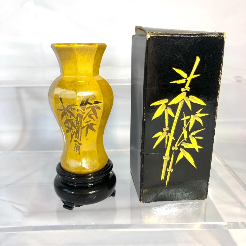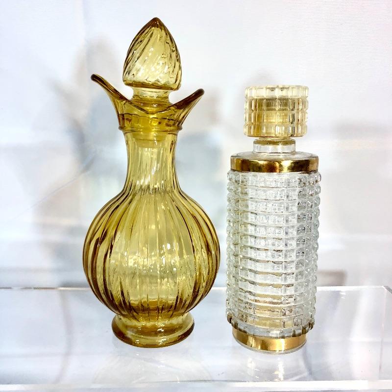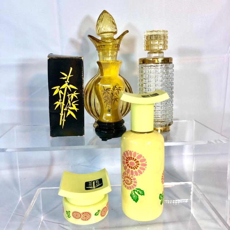 To A Wild Rose cologne bottle; amber bath oil cruet, Sweet Honesty Golden Bamboo Vase (NIB)