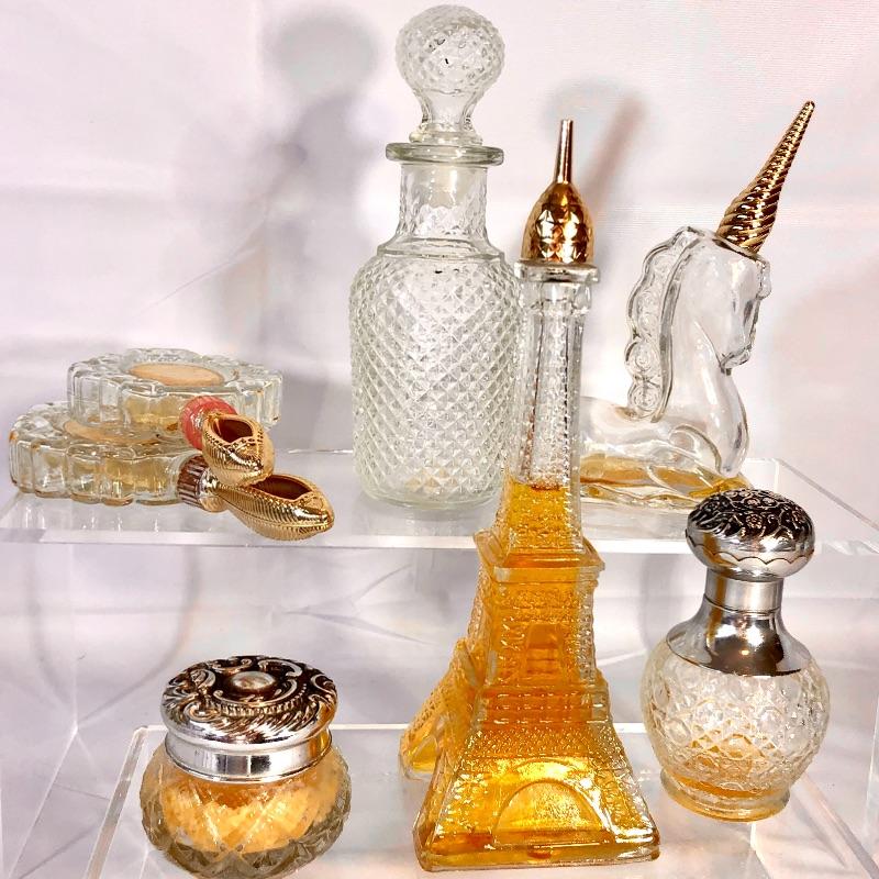 Unicorn, tooled top spray bottles (Brocade), jar
