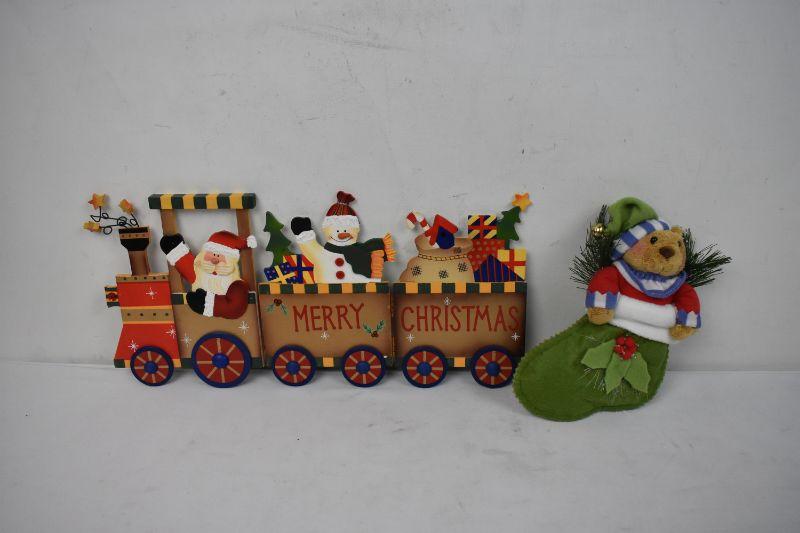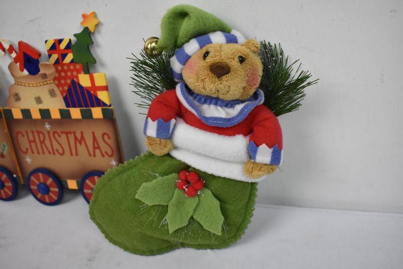 Avon Merry Christmas Train Wall Decor & Christmas Stocking Bear