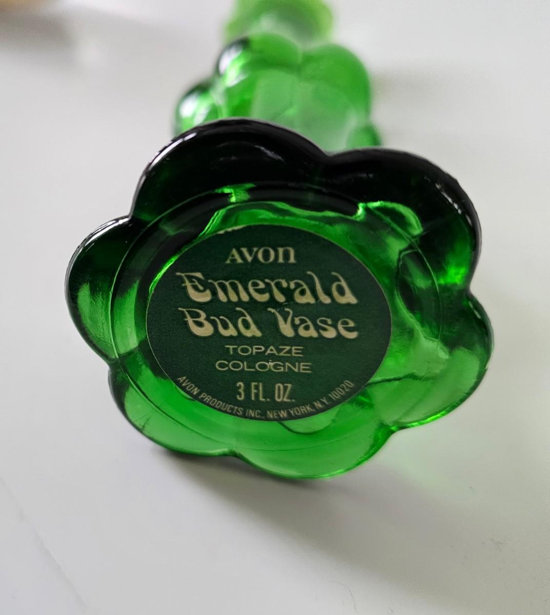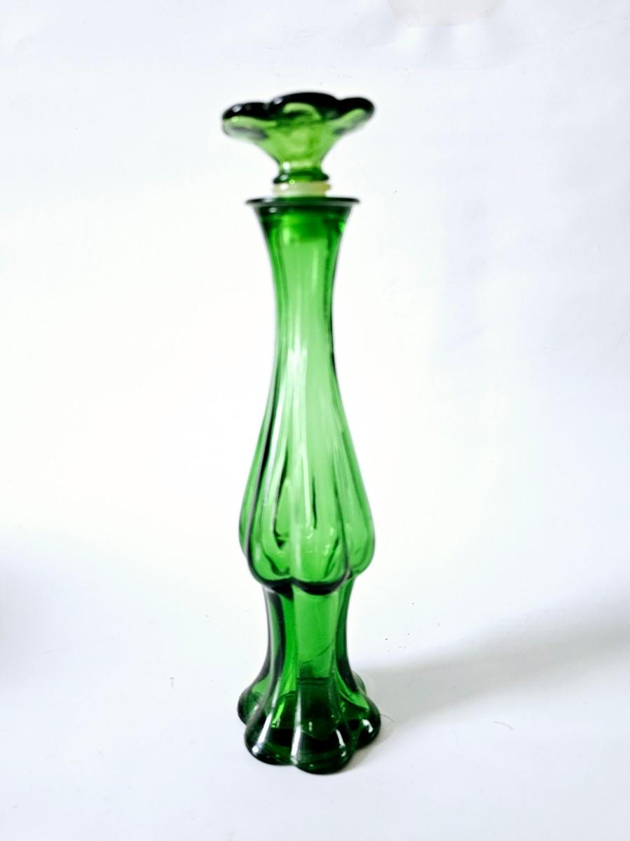 Avon Mid Century Green Glass Perfume Bottle /Decanter