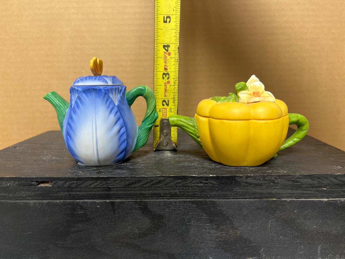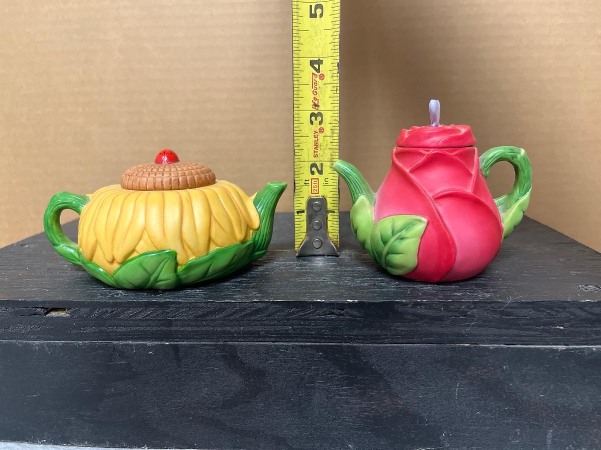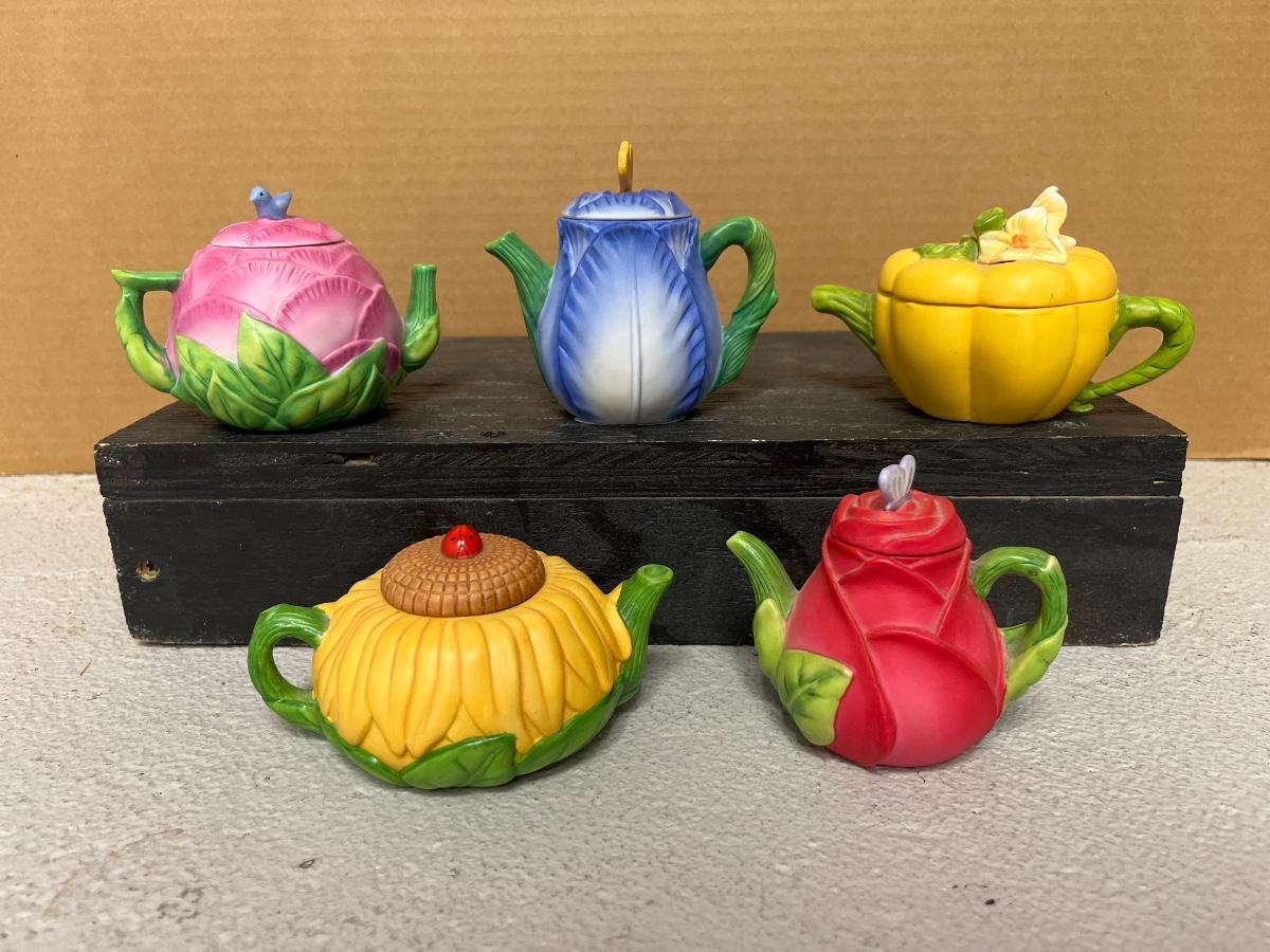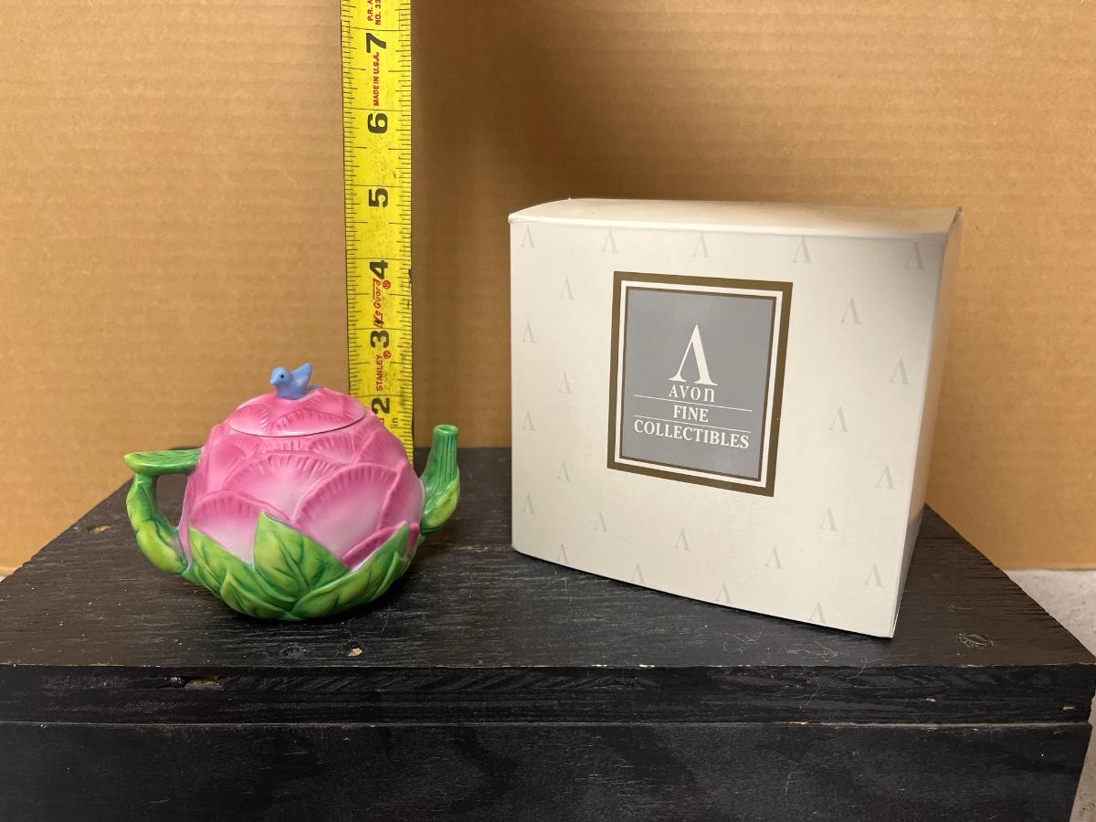 Collection of 1995 Avon mini teapots. Peony teapot comes with box