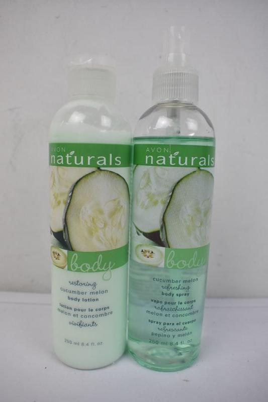 Avon Naturals Body Lotion & Body Spray, Cucumber Melon Scent, 8.4 oz Each - New