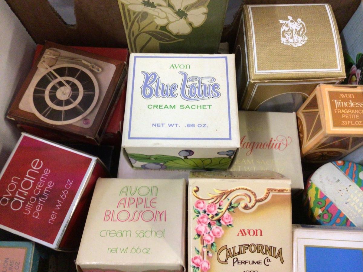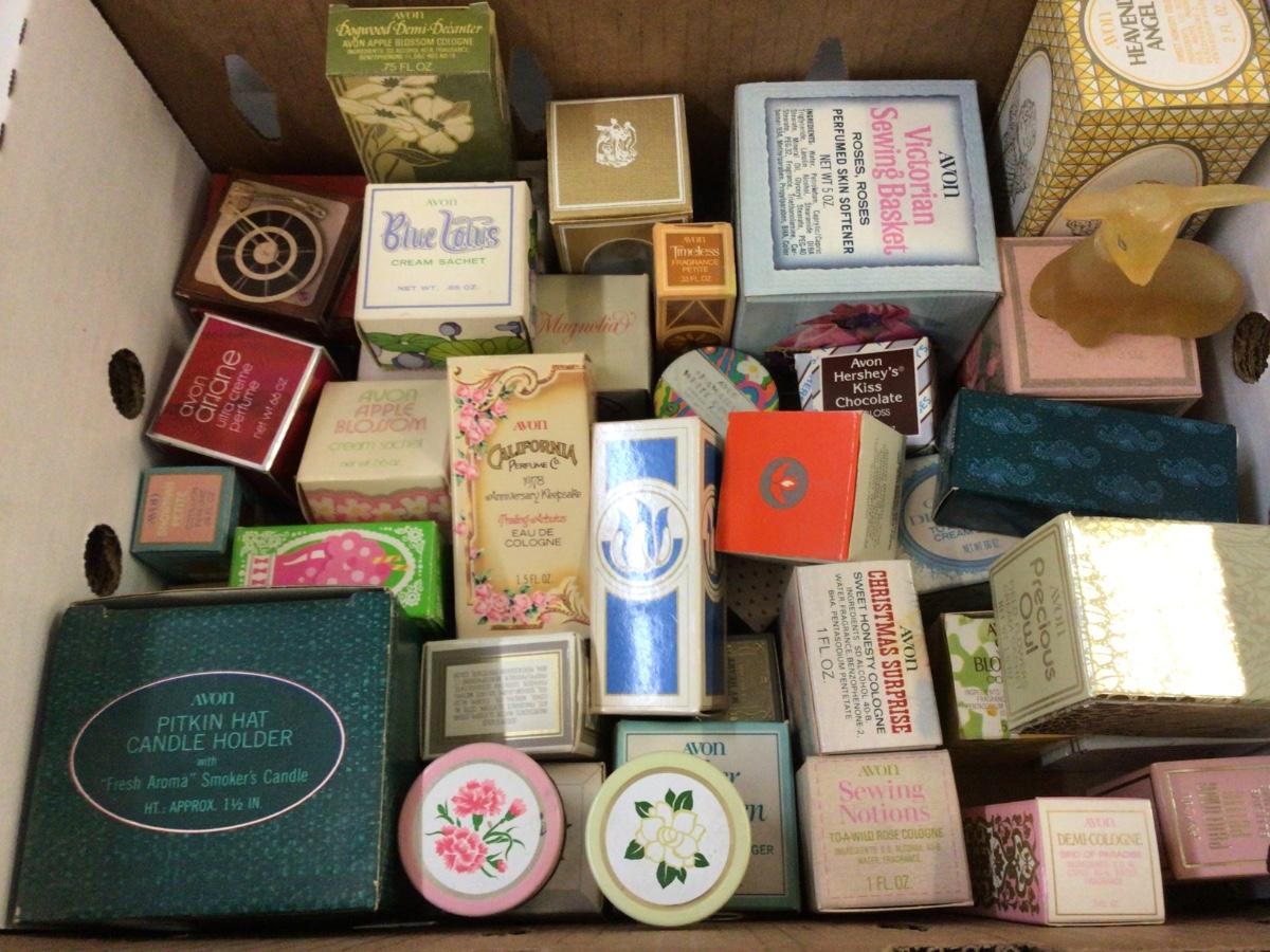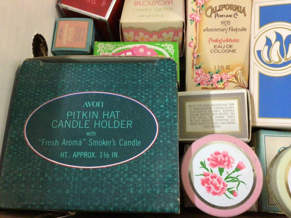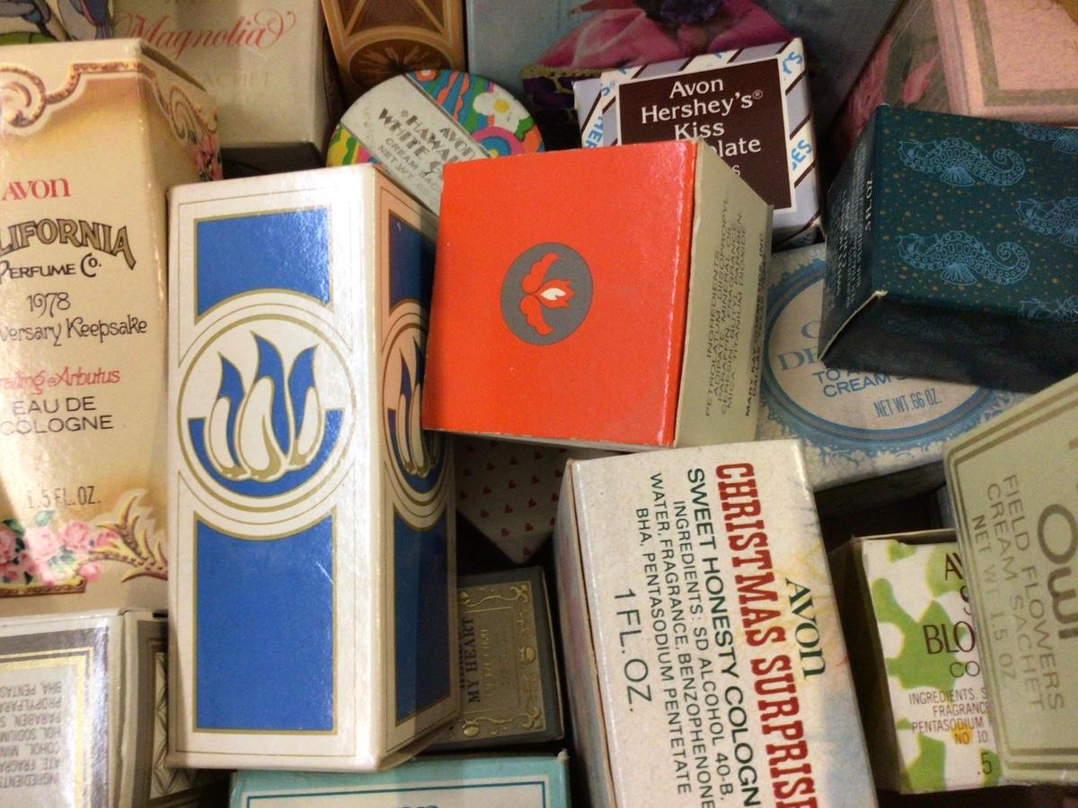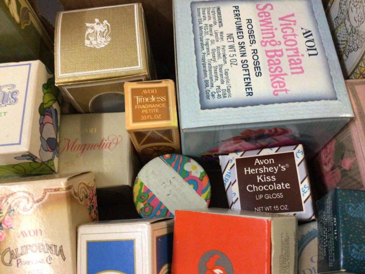 You get a bunch of new in box creams and makeup all from Avon. There are some Avon perfumes new in box as well.