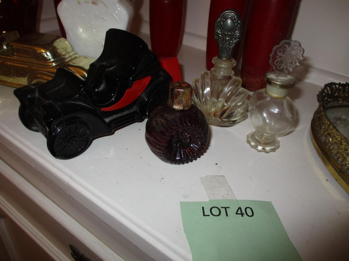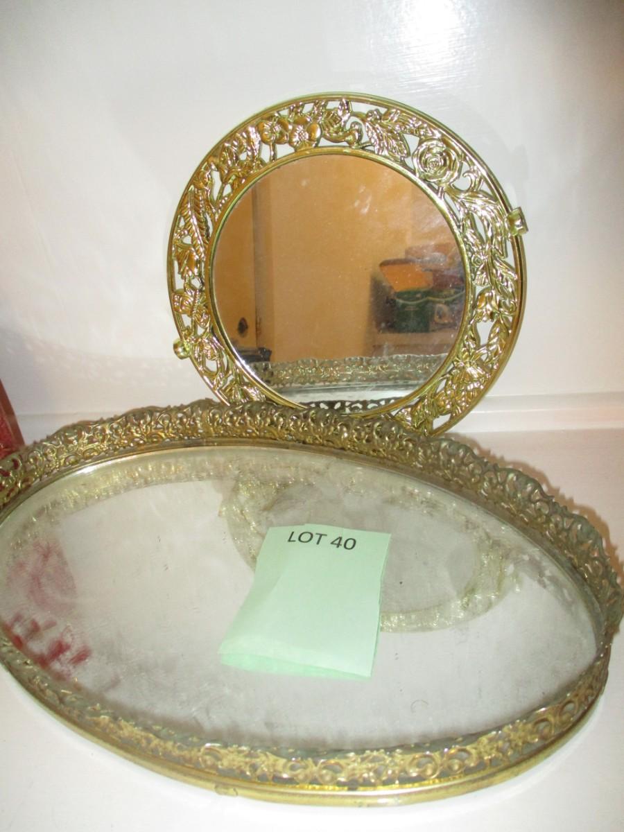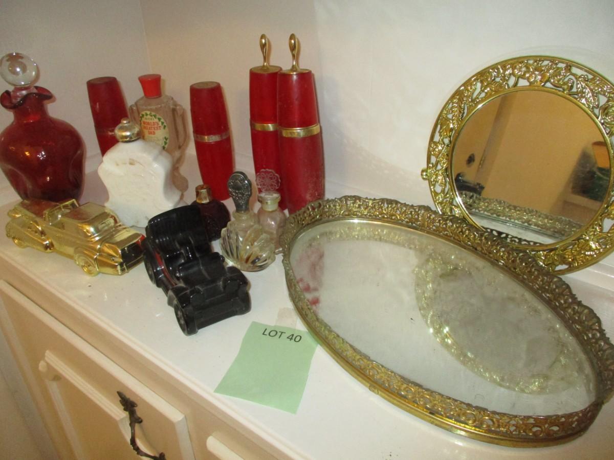 Perfume bottles. Mirrored vanity trays.