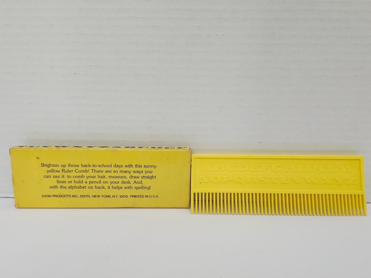 Avon School Days Ruler Comb Yellow Plastic Alphabet Back Vintage Avon Desk Comb With Original Box