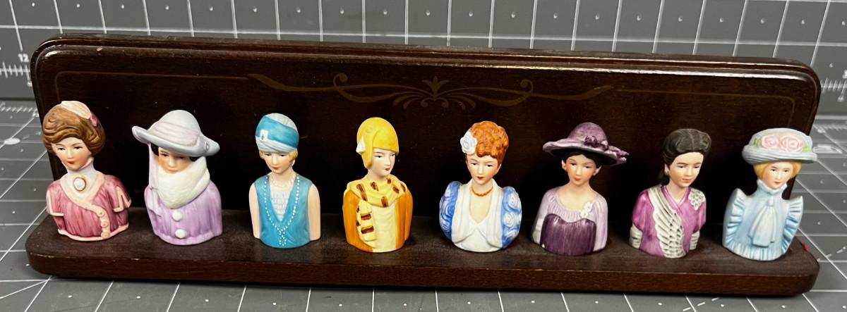 Avon Thimbles Victorian Era, On Lovely Walnut Shelf
