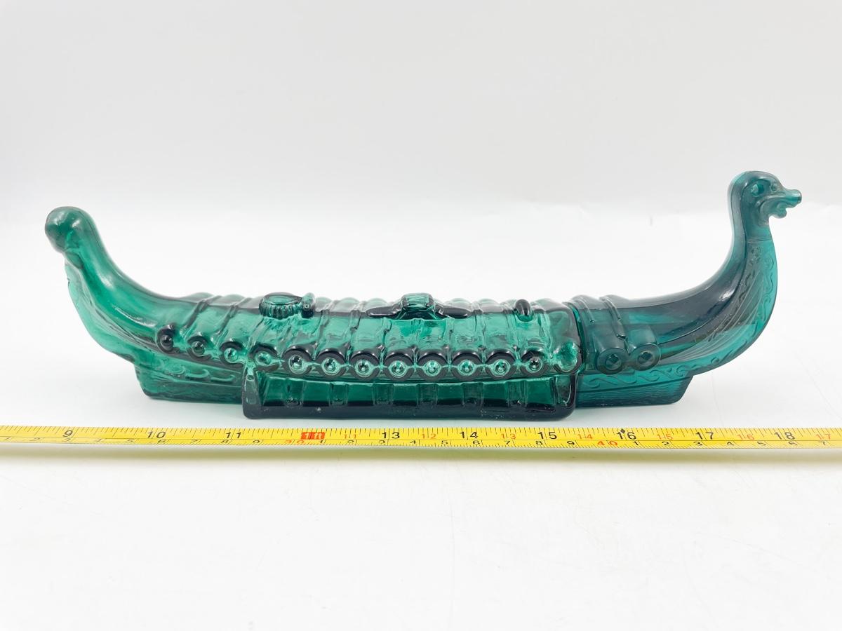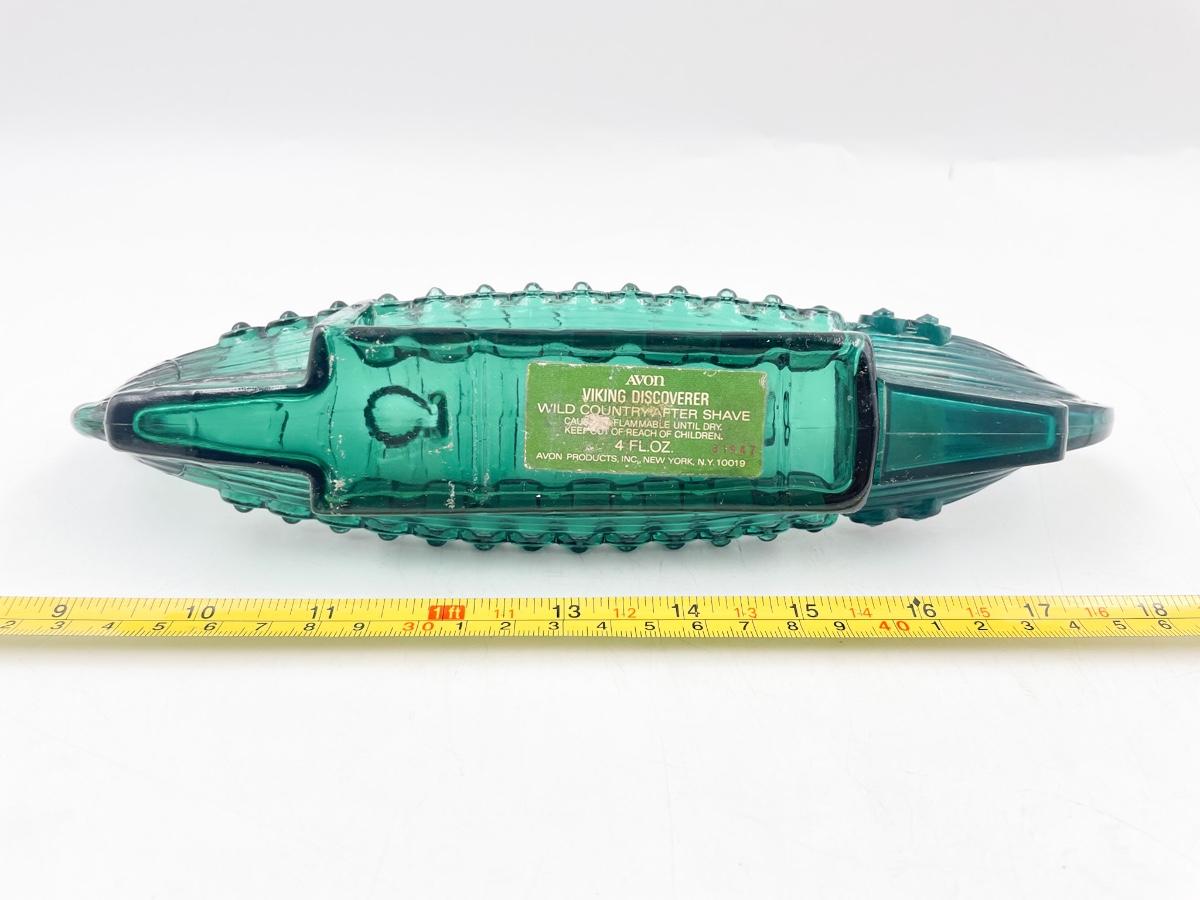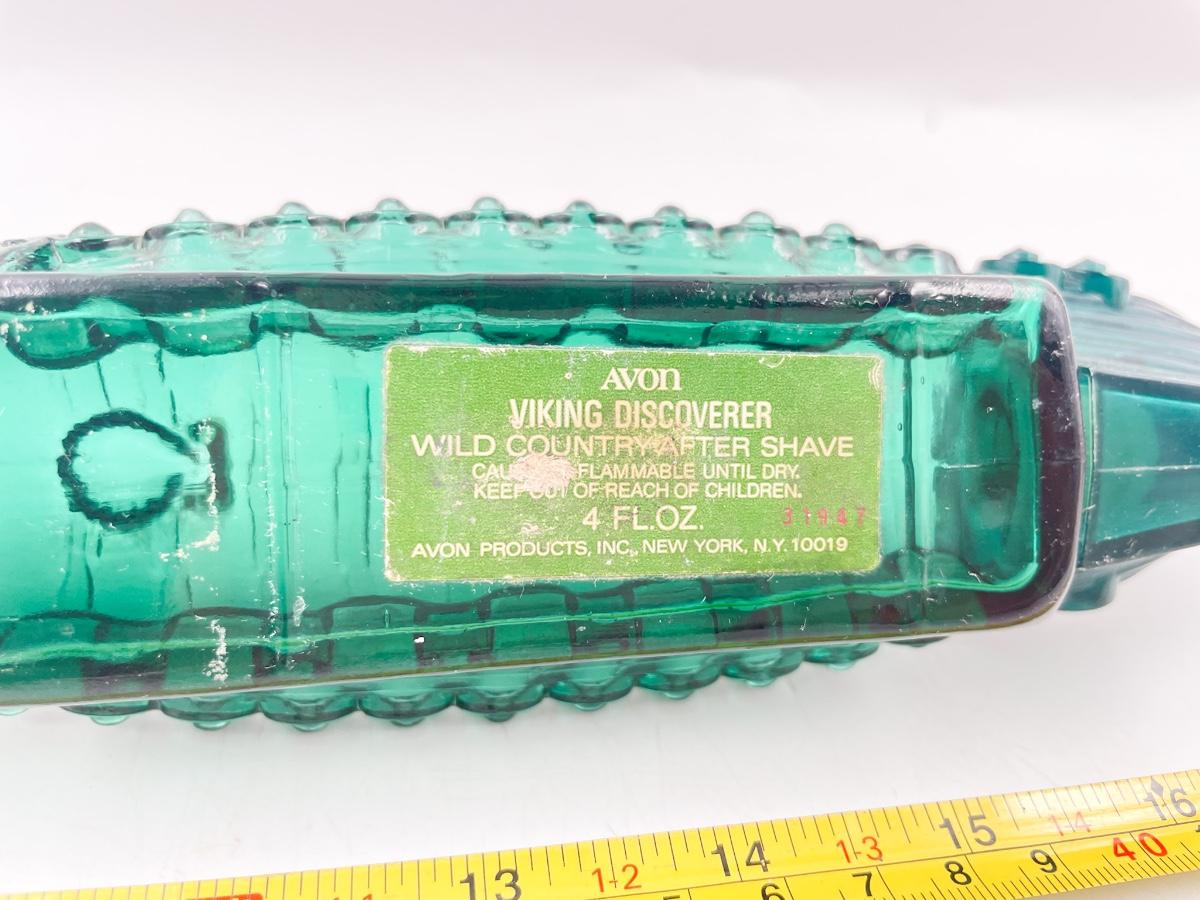AVON “VIKING DISCOVERER” GREEN GLASS AFTERSHAVE BOTTLE (EMPTY)