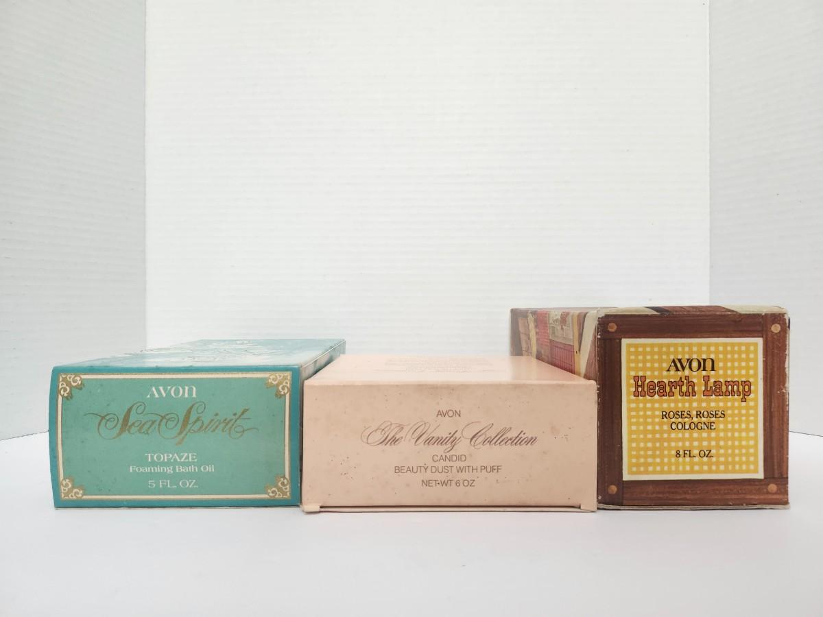 Avon Vintage Fragrance Gift Lot Sea Spirit Topaze Vanity Collection Beauty Dust Hearth Lamp Roses