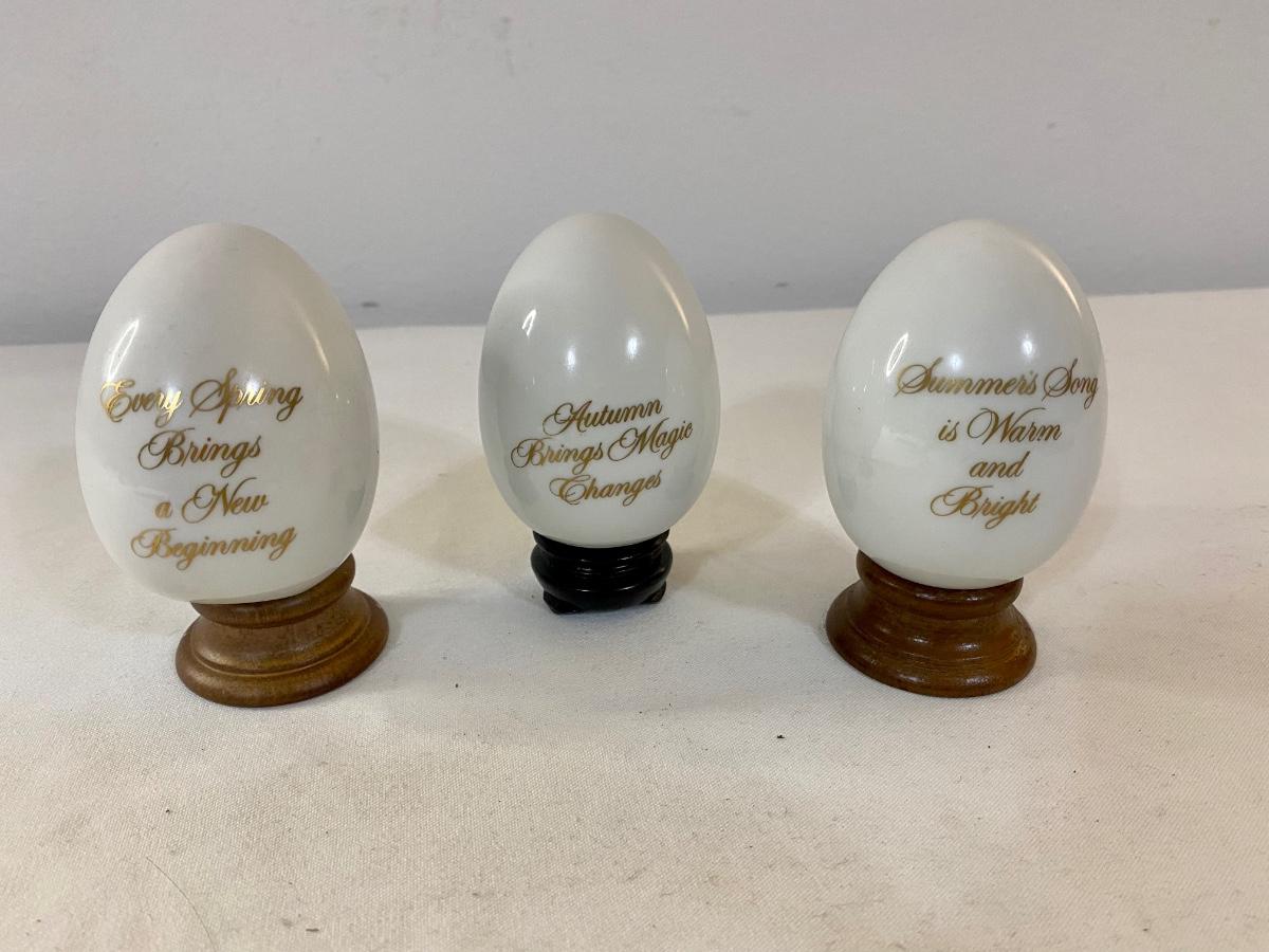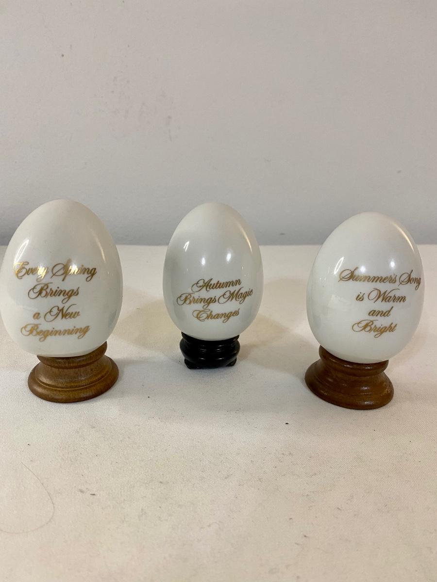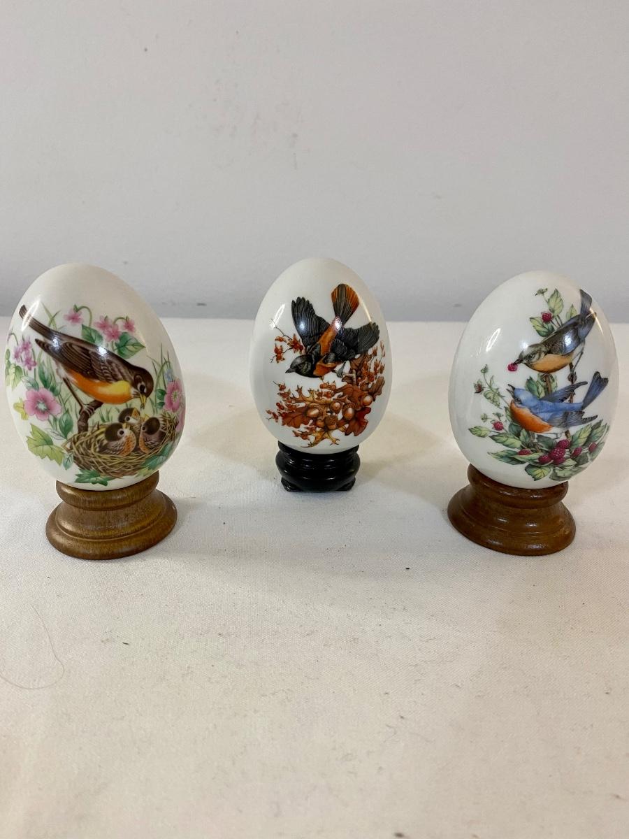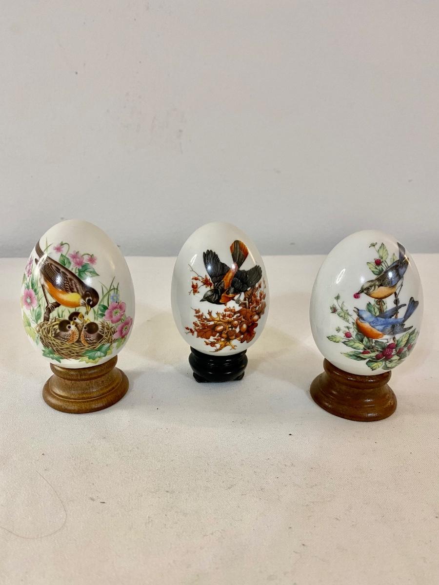Set of 5 Porcelain eggs. 2 smaller eggs have cologne in them.