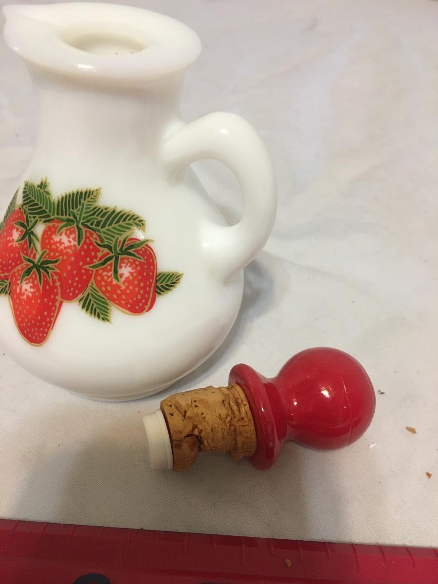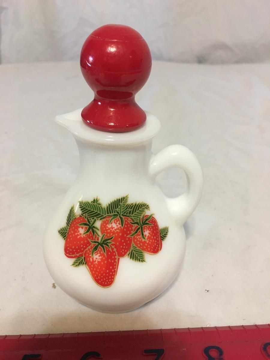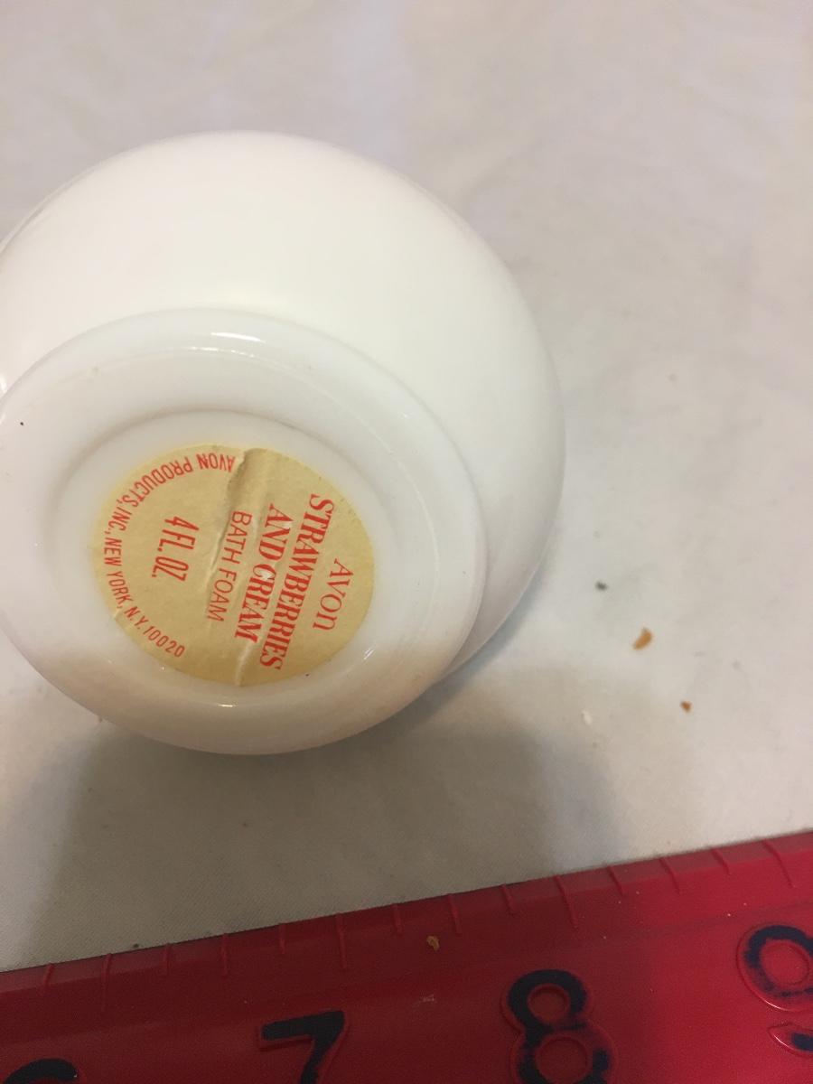 Avon Vintage Strawberries And Cream Empty Milk Glass Bath Foam Decanter Used
