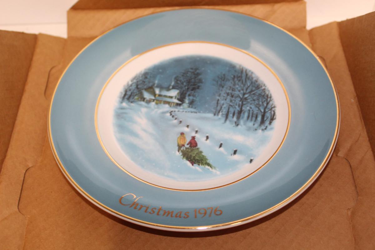 Avon Wedgewood Christmas Plate 1976 Bringing Home the Tree Vintage CL14-1