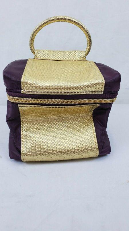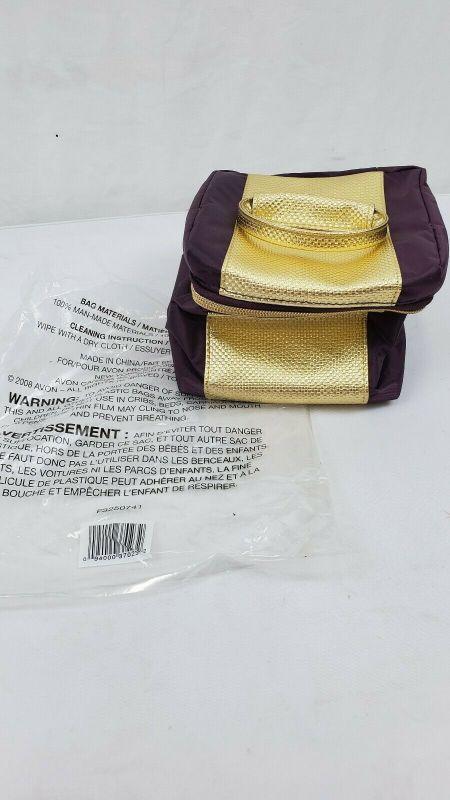 Avon- Womens Toiletry Makeup Bag, Royal Gold & Eggplant, Open Pkg- New