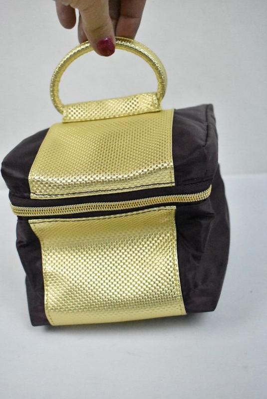 Avon Womens Tolietry Make Up Bag, Royal Gold & Eggplant - New, Open Package