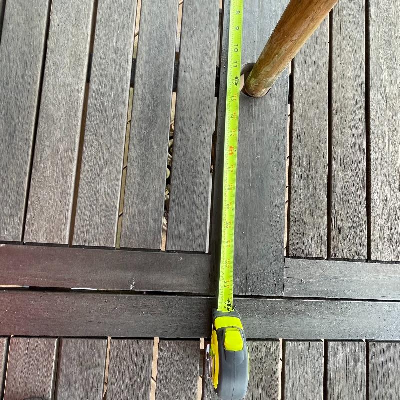 Includes metal umbrella stand, Umbrella has a few tiny pin holes form wear