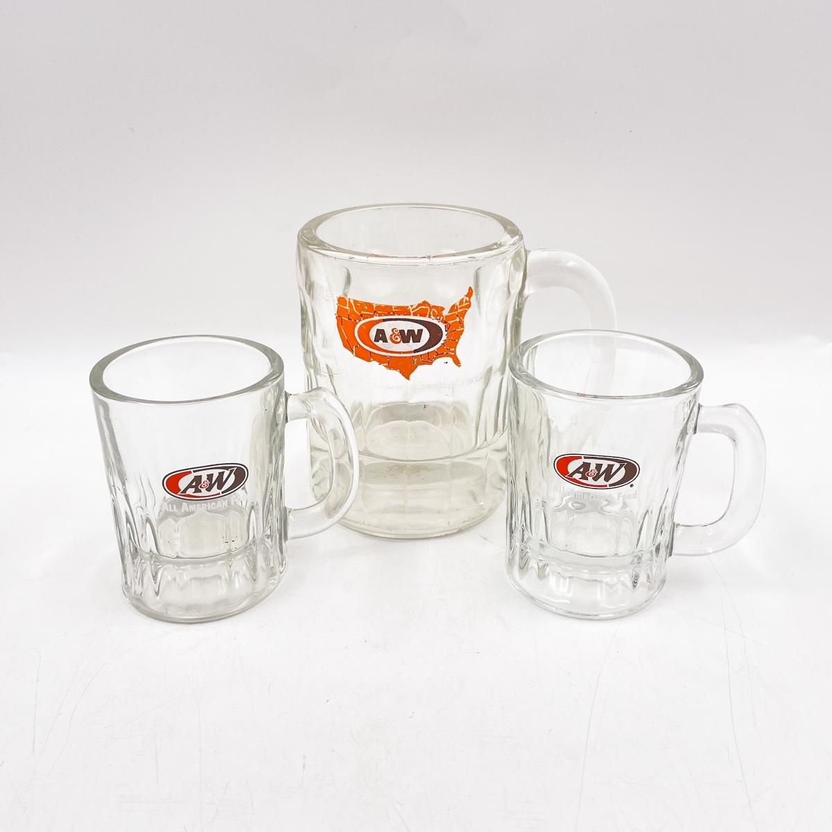 In good condition. Small mugs are approx 3” tall, large mug is 4” tall.
