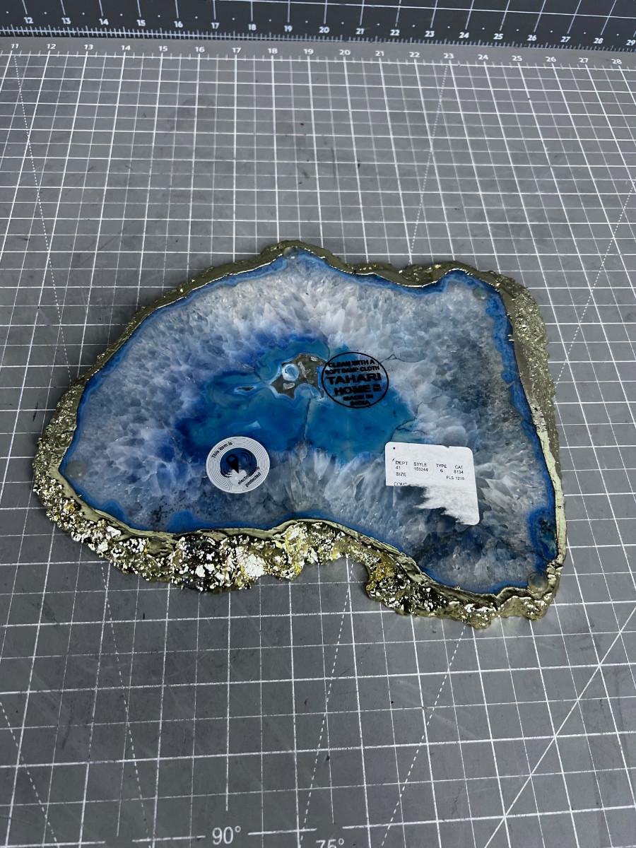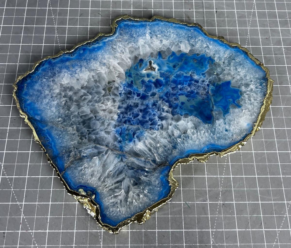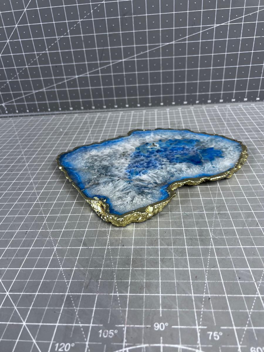 Awesome Blue Polished Slice of Rock W/ Brass Edge