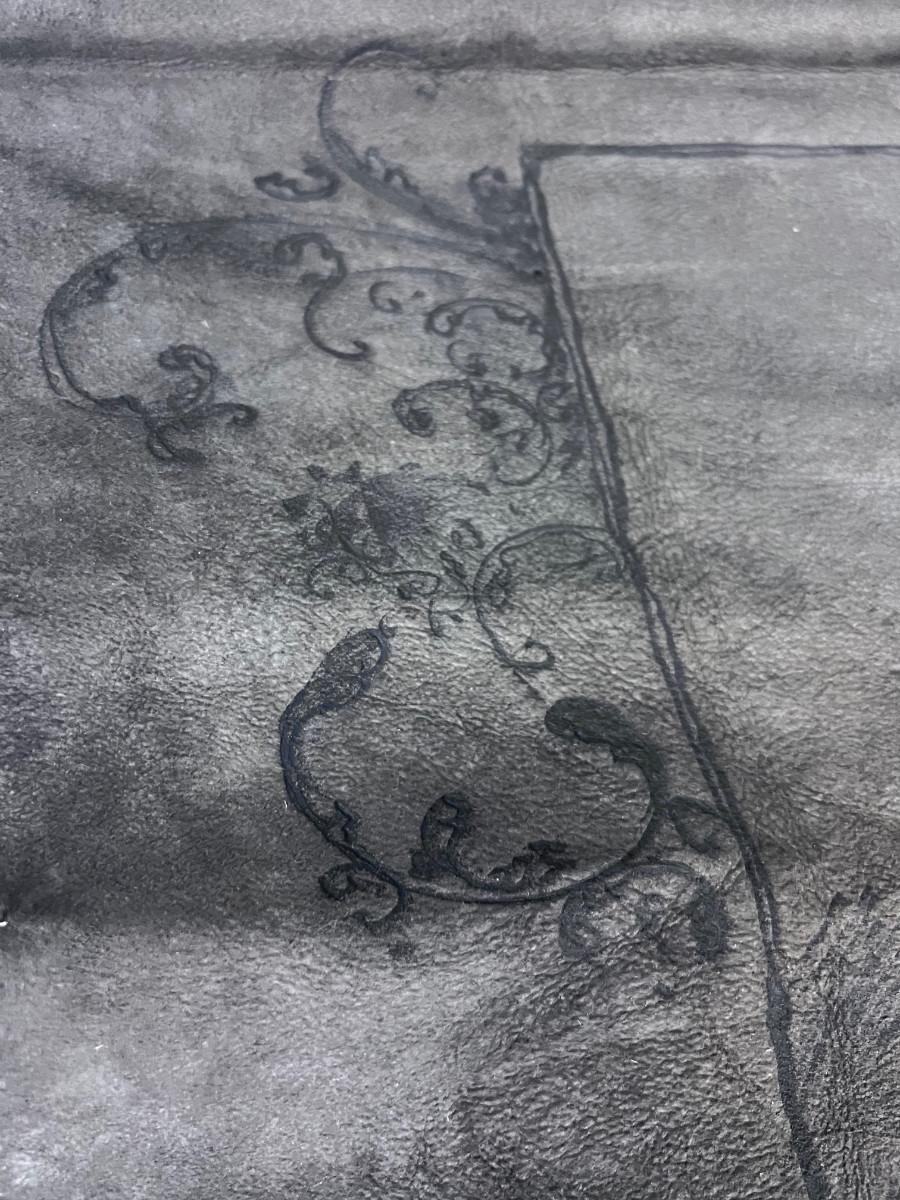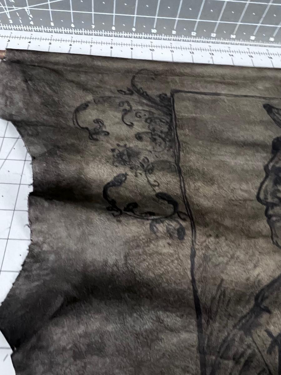 Mostly Likely Burnt on to the Elk or Deer hide. Fantastic ART! 24" Long by 24" at its widest. Has a couple of Paint Spots on the Back Side. VERY NEAT PIECE!!