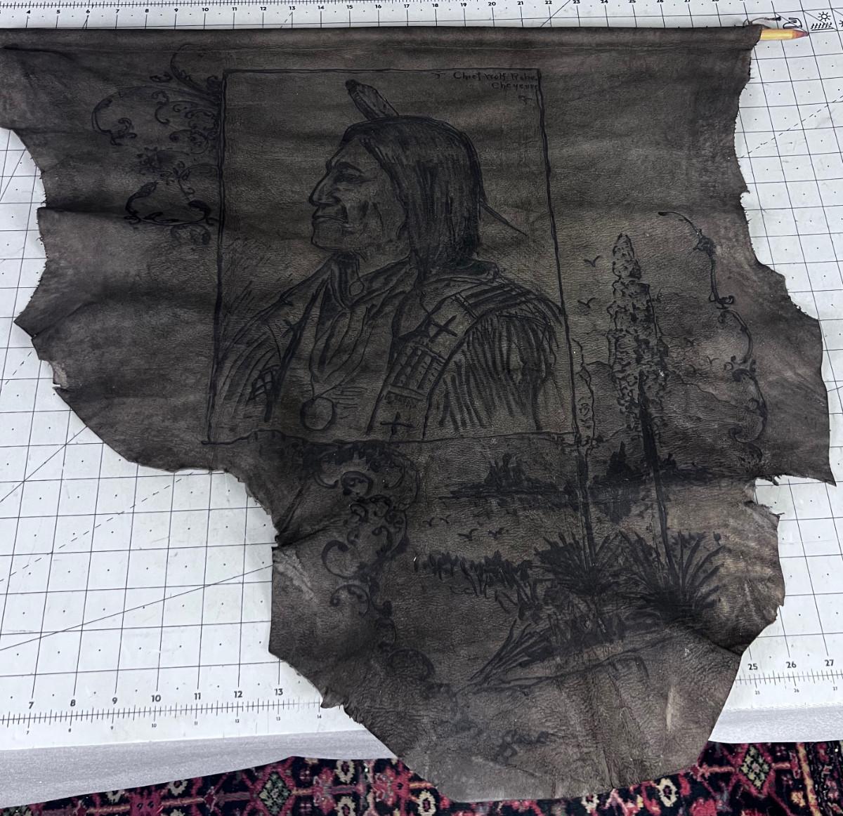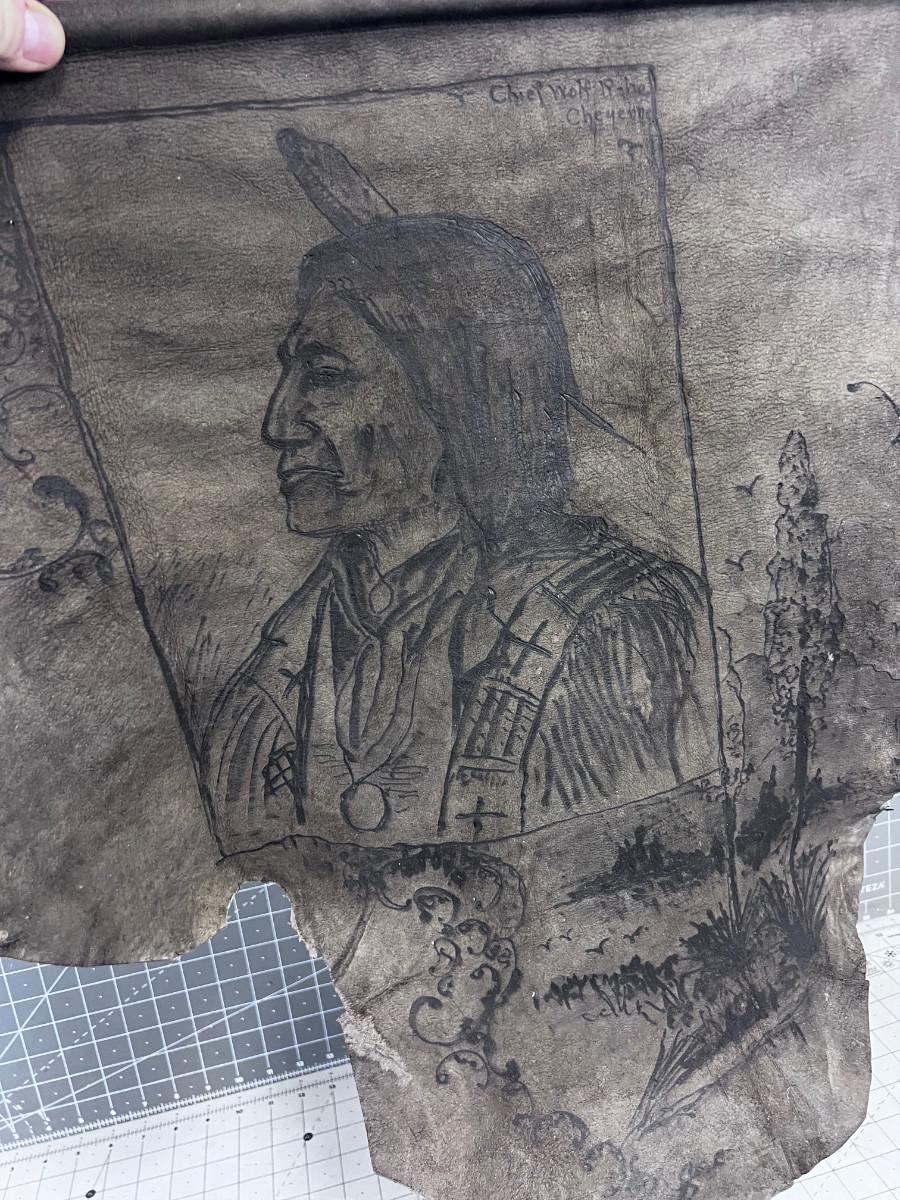 AWESOME! Chief Wolf Robe, Cheyenne, Hide ART