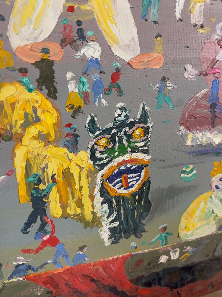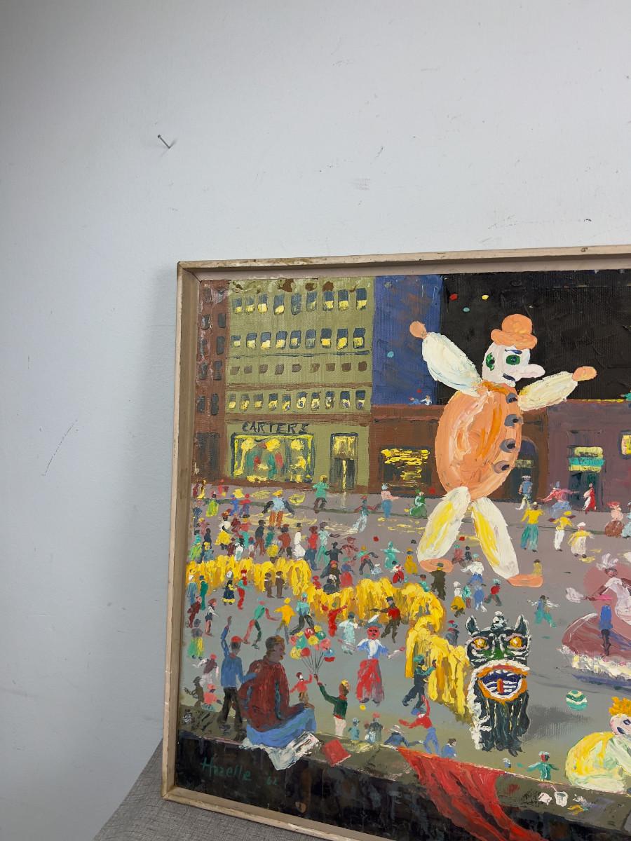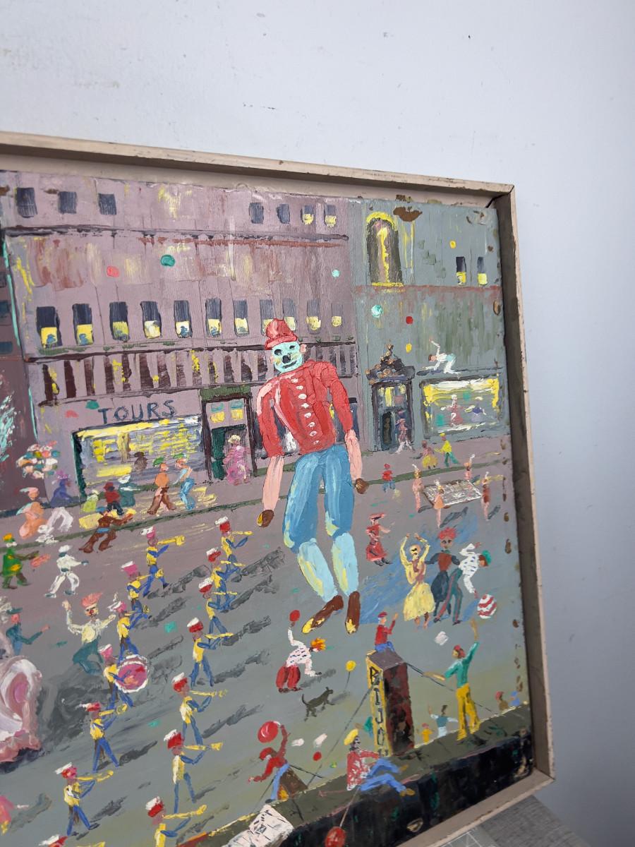 Awesome Outsider Art Mardi Gras Parade Oil on Board 48x24" Hazelle '62