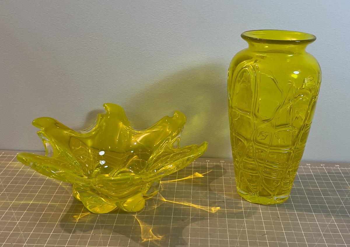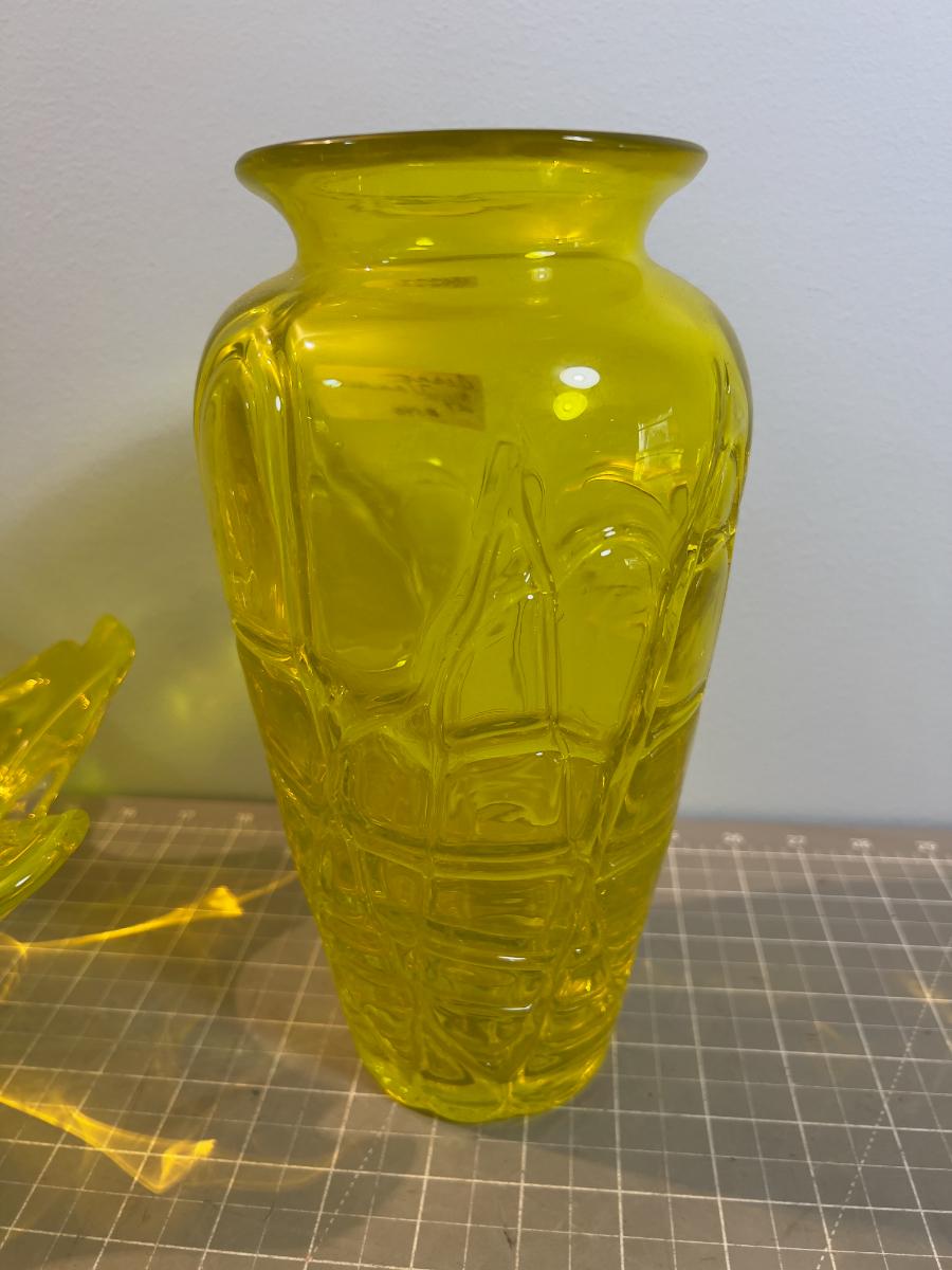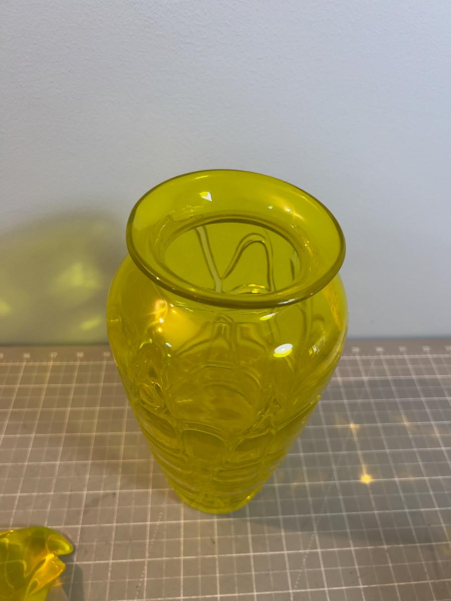 Awesome Vaseline Yellow GLASS Vase & Bowl