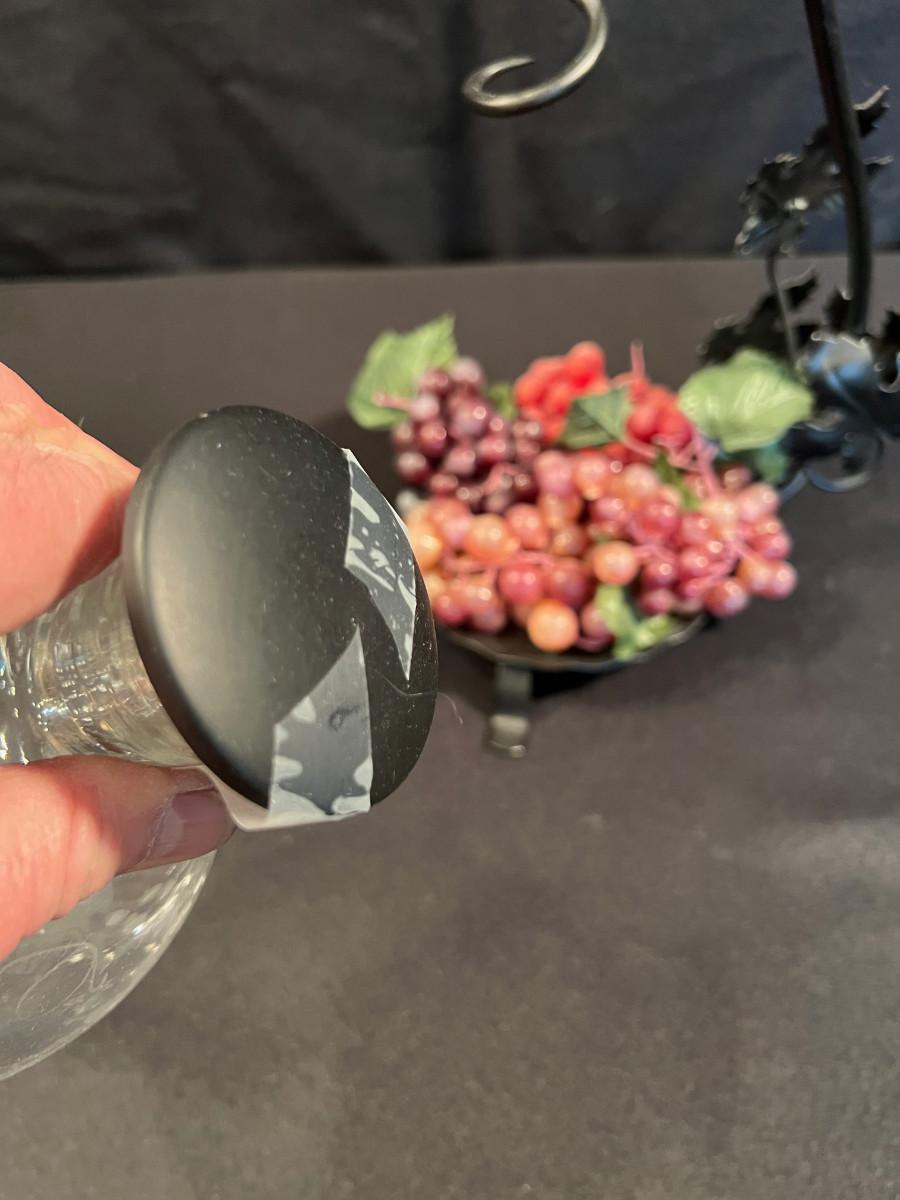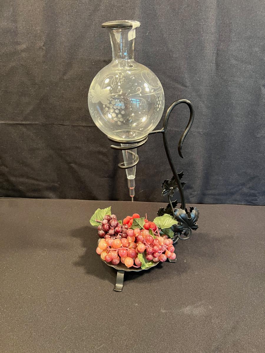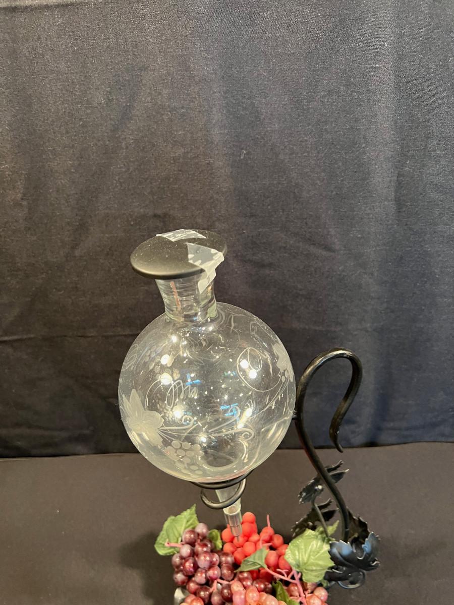 20" Tall Black Wrought Iron Metal Base with Etched Glass