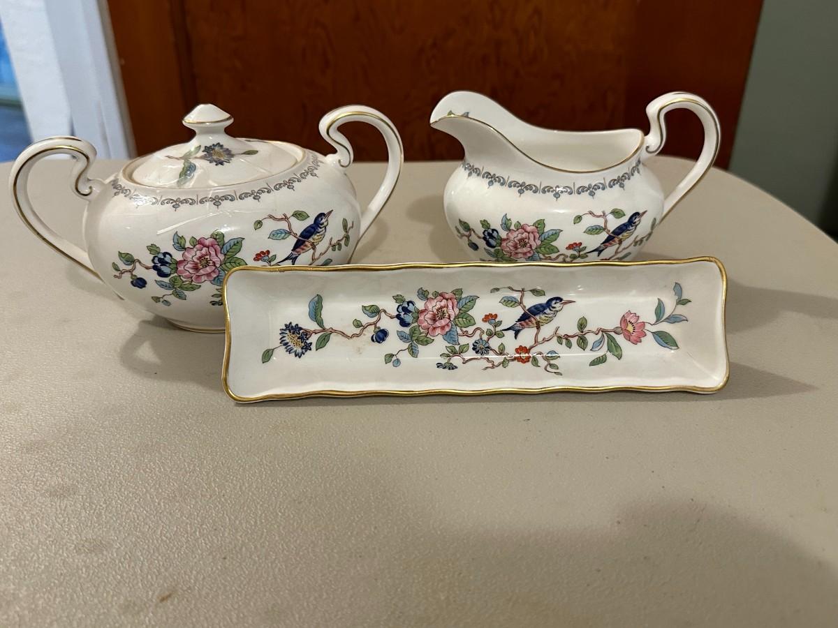 Aynsley Pembroke Sugar Bowl, Milk, and resting spoon