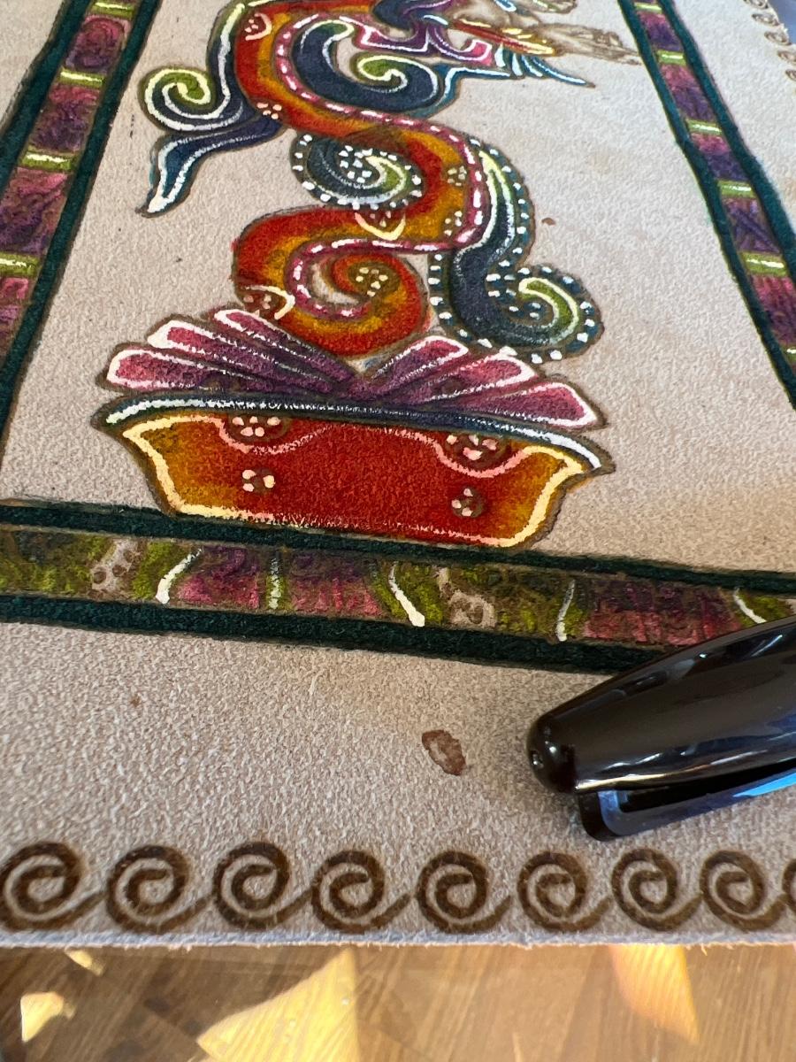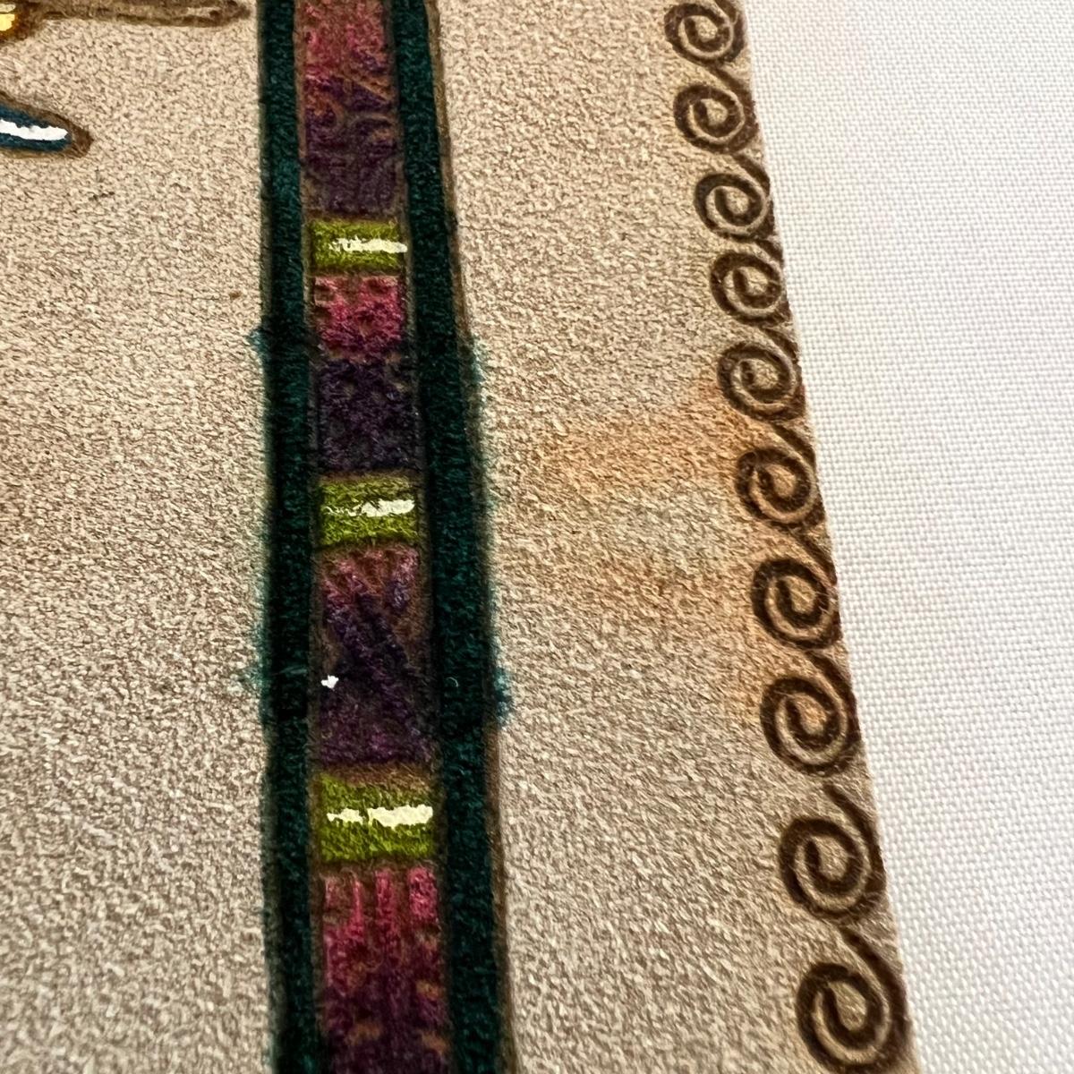 Aztec Style Art on Suede Plus Brass Bell From Thailand (LR-RG)