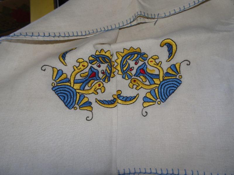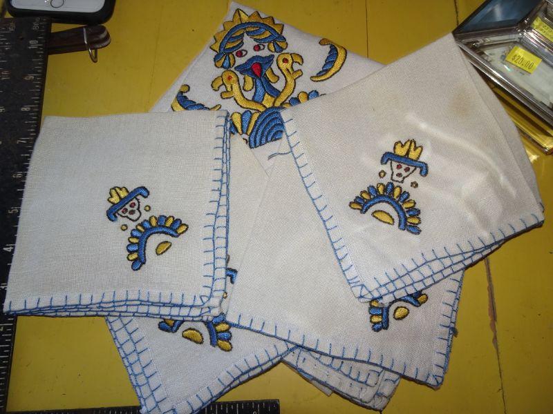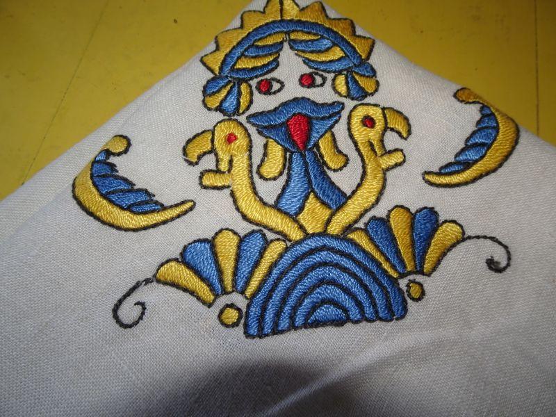 Aztec Hand Embroidered Card Table Cloth & 4 Napkins, Kind of looks like Day of the Dead