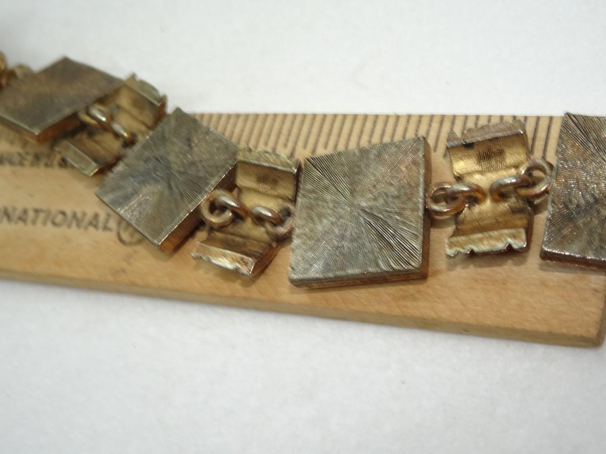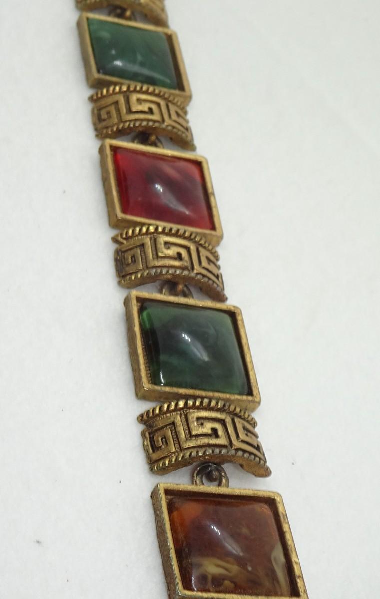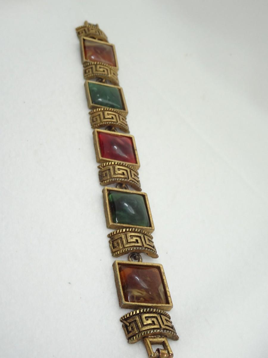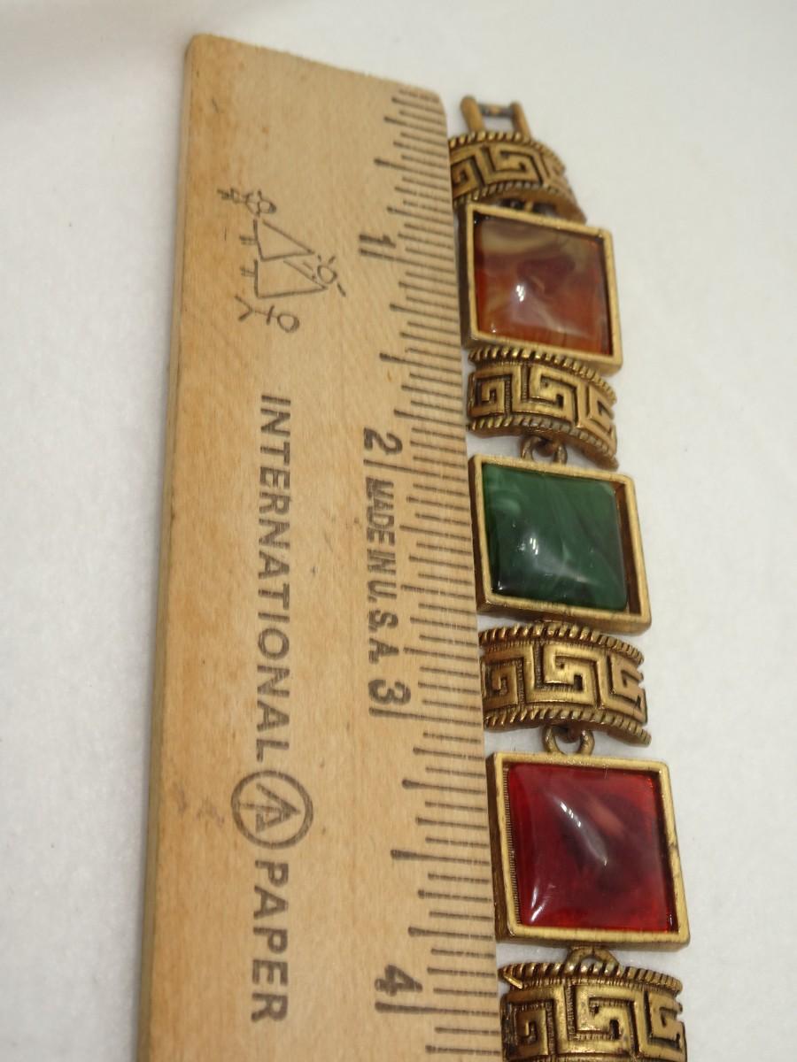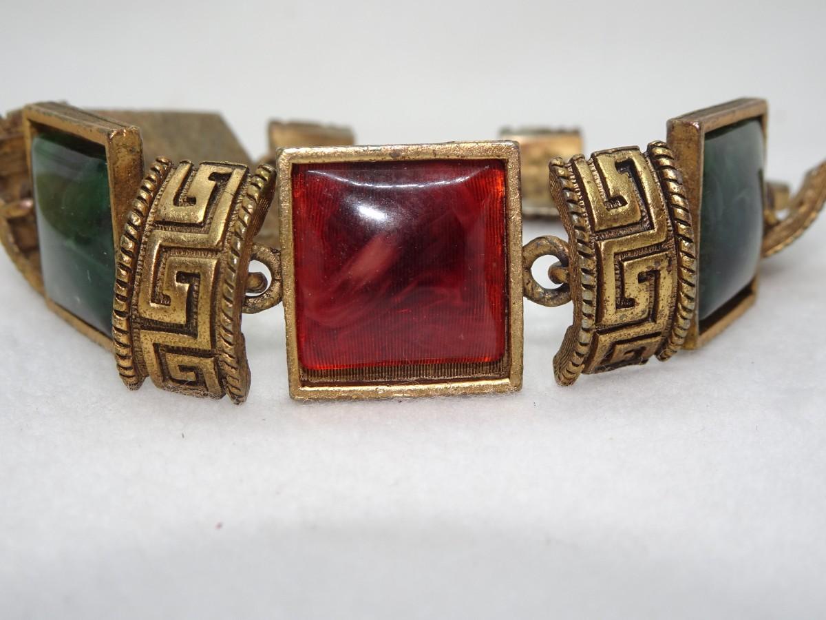 Aztec Style Gold Tone Link Bracelet, Reds & Greens