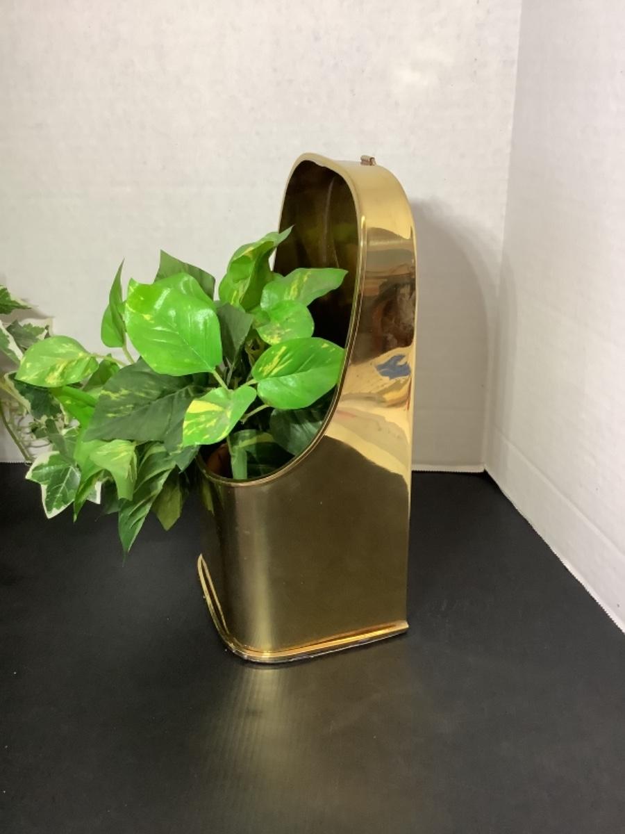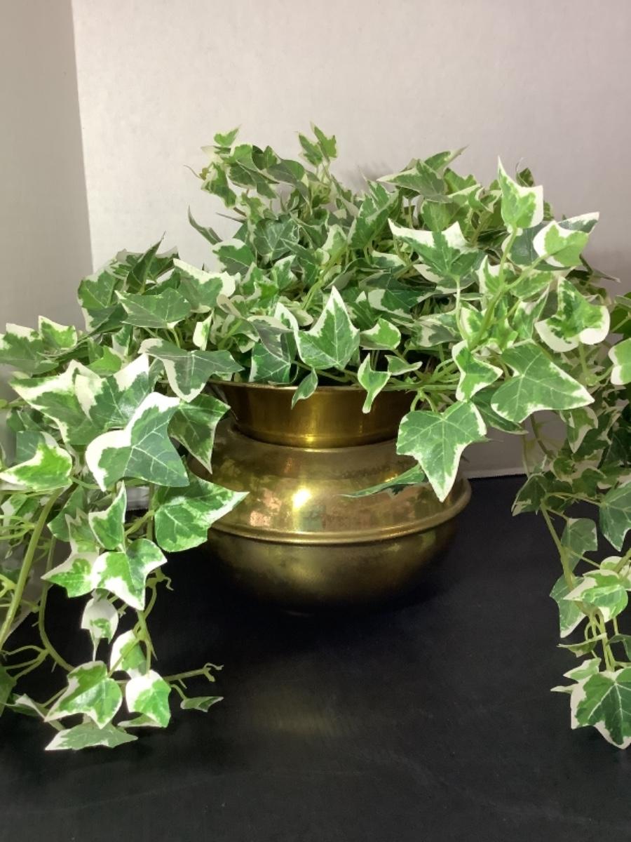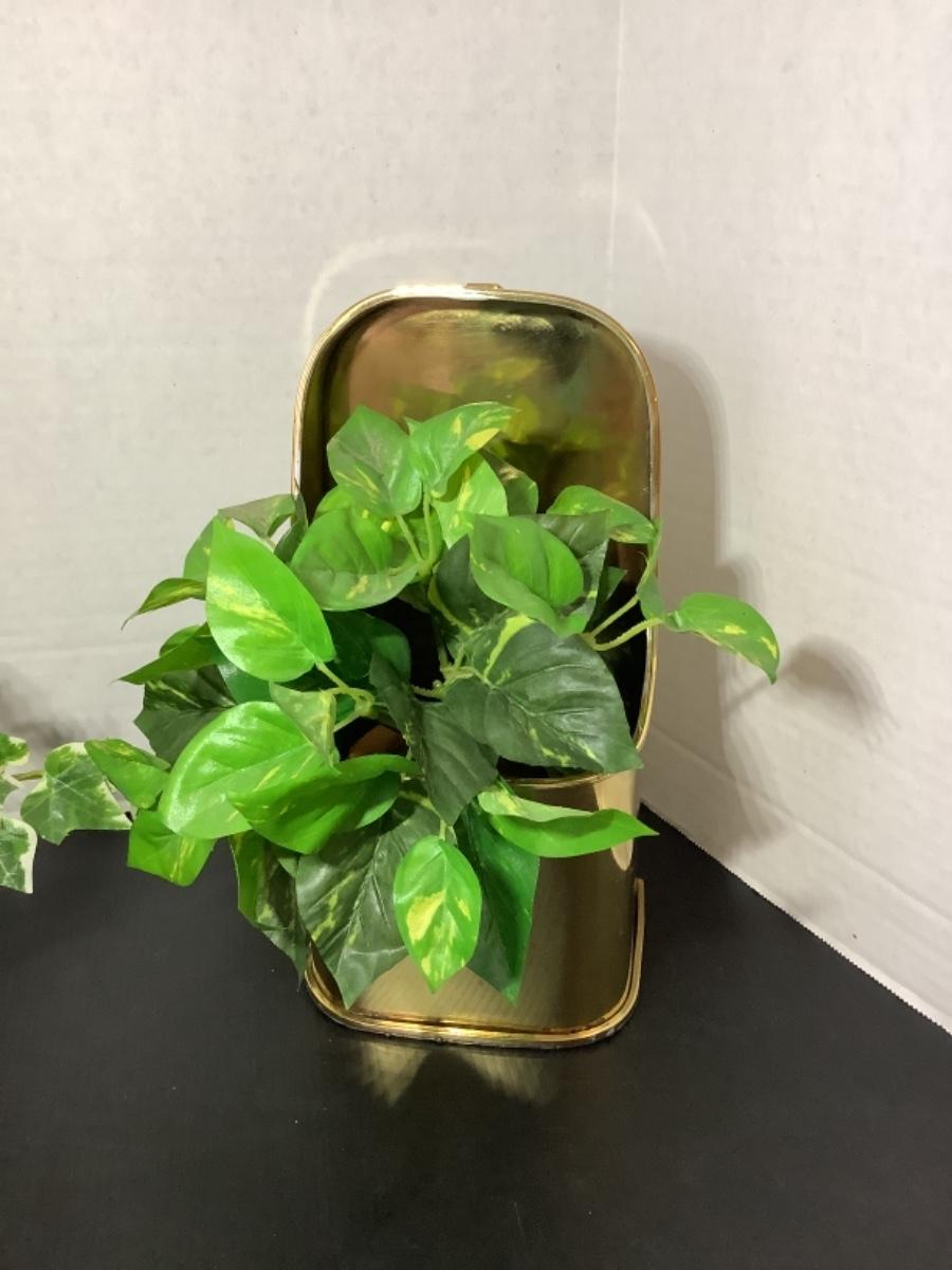 B - 105. Three Brass Decorative Containers with Faux Plants