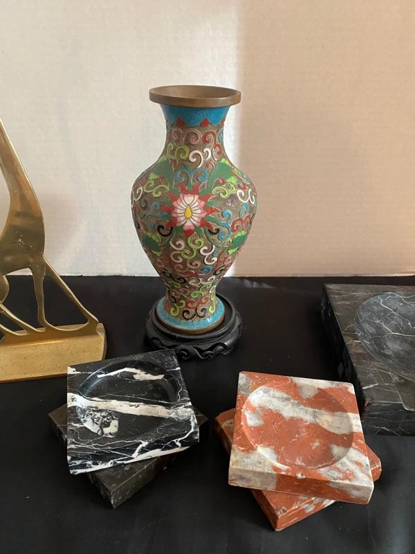 B - 1151 Decorative Lot of Marble & Cloisonné Vase