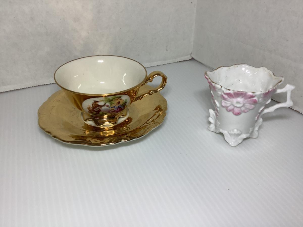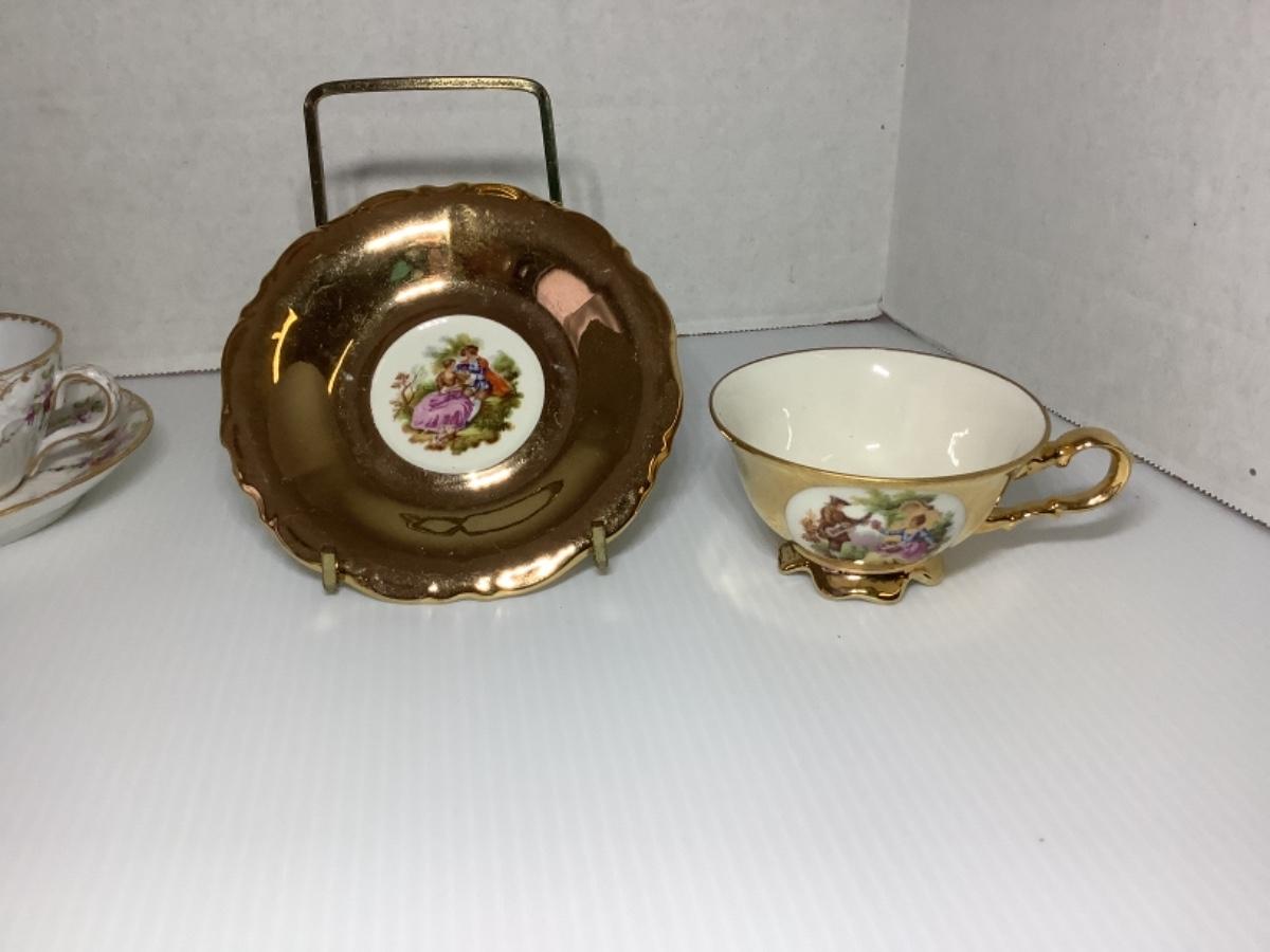 1 ) Great pair of Tea Porcelain Bavaria fragonard & gold decor